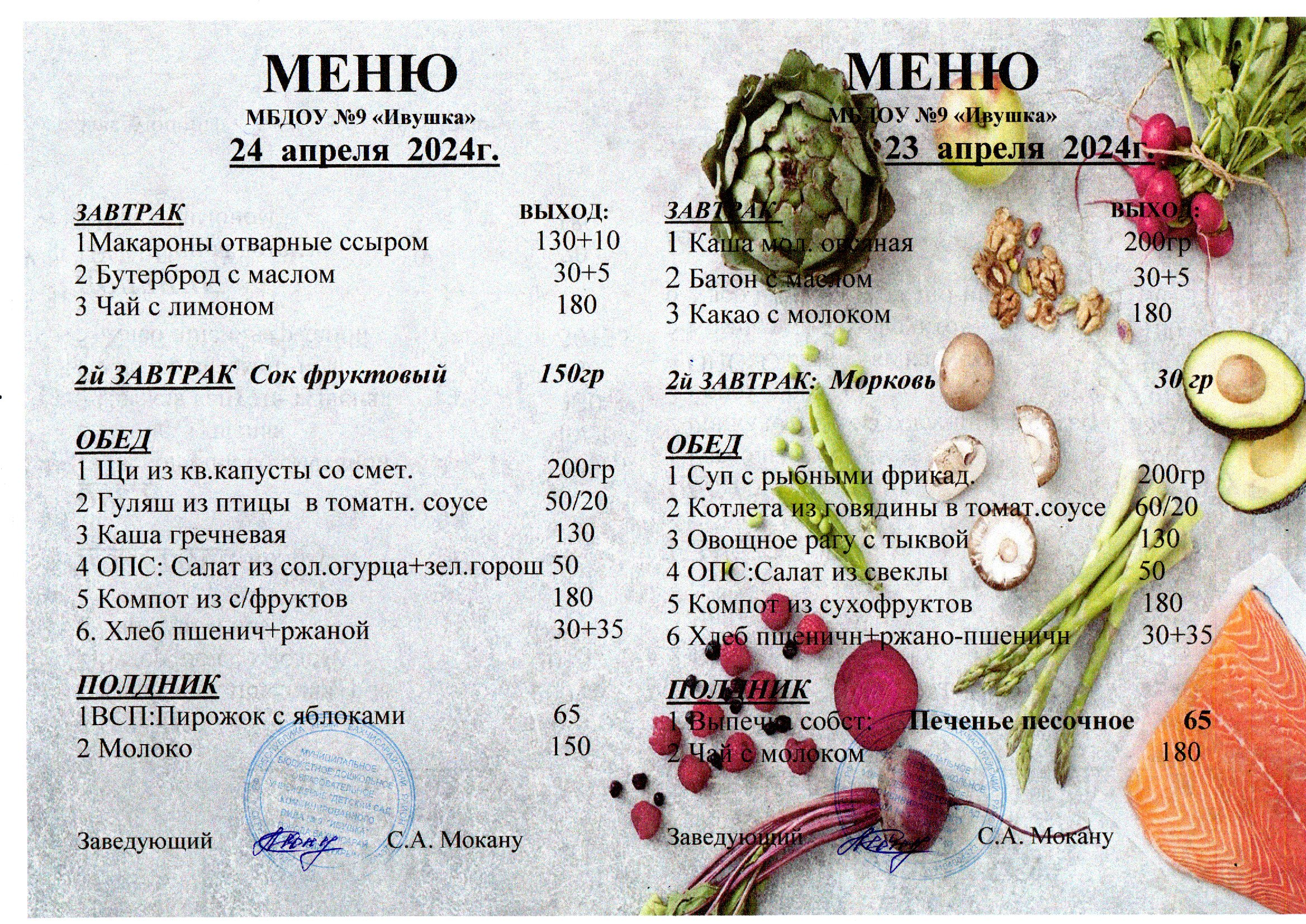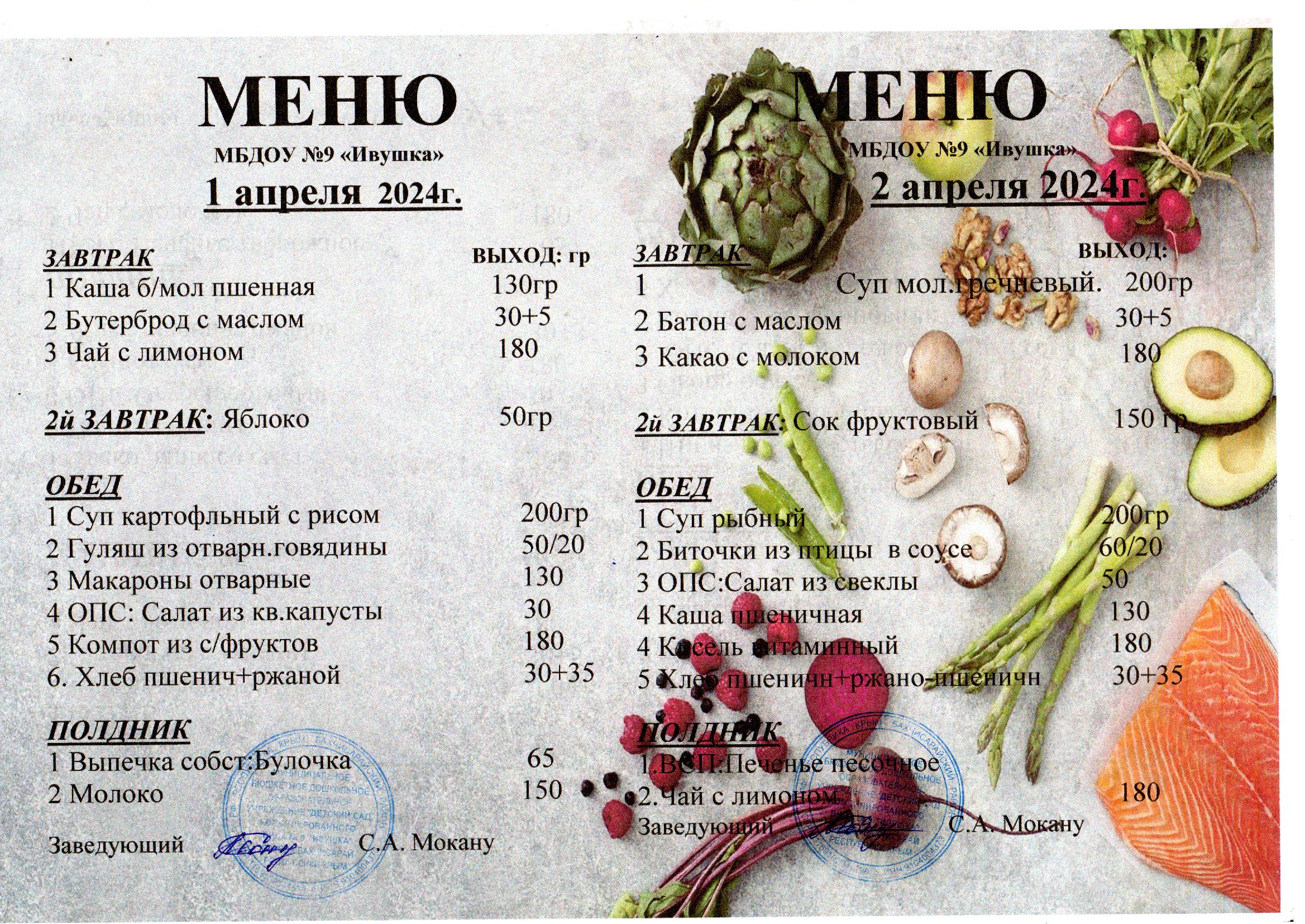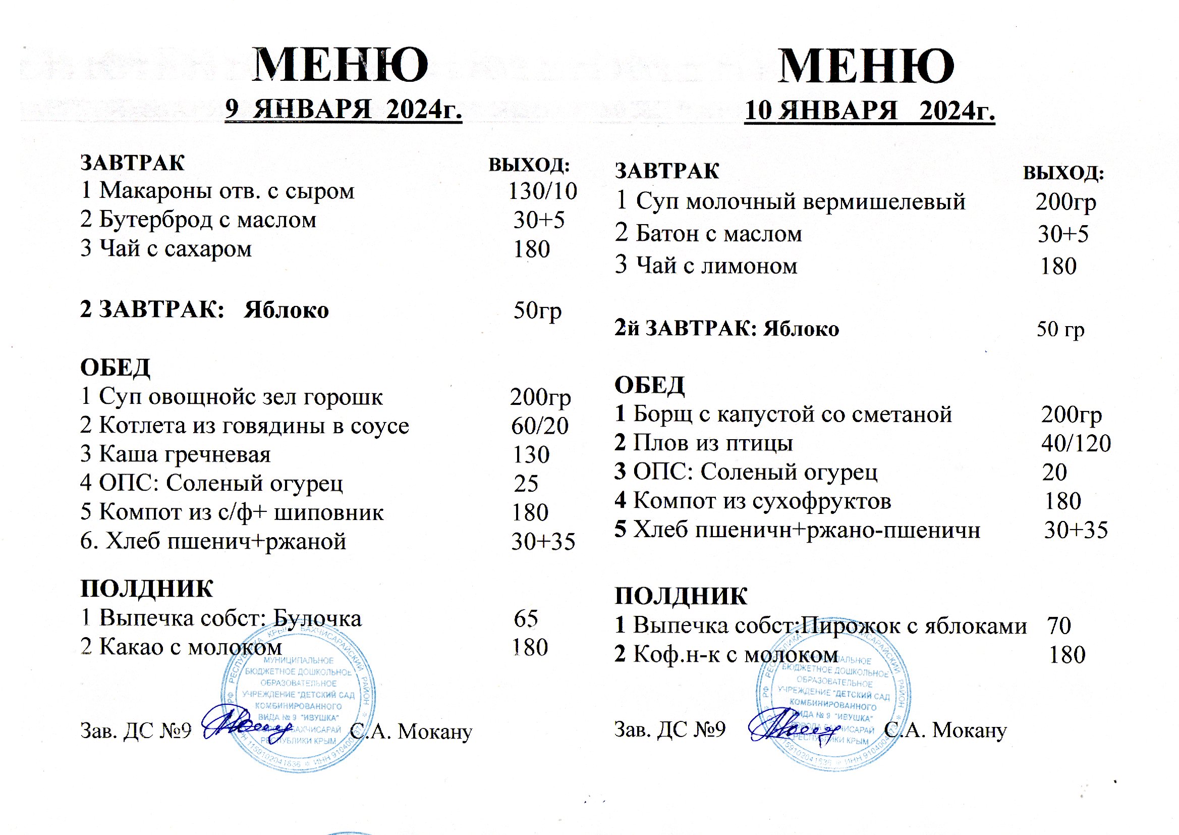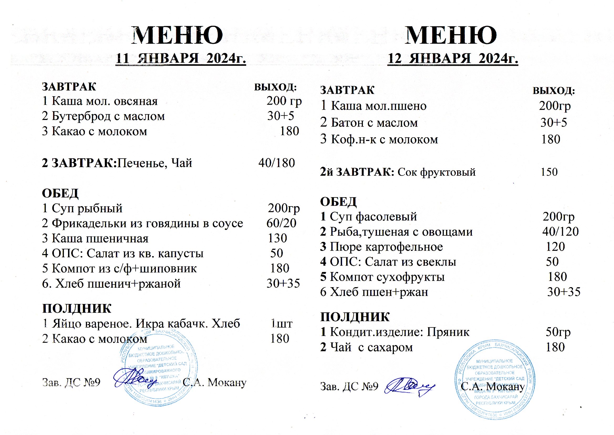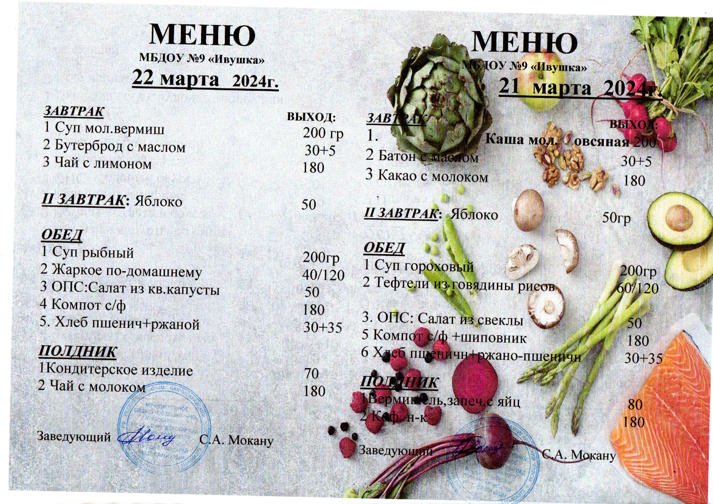 Отсутствуют, в связи с наличием поваров в штате МБДОУ "ДС № 9 "Ивушка" г.Бахчисарай.