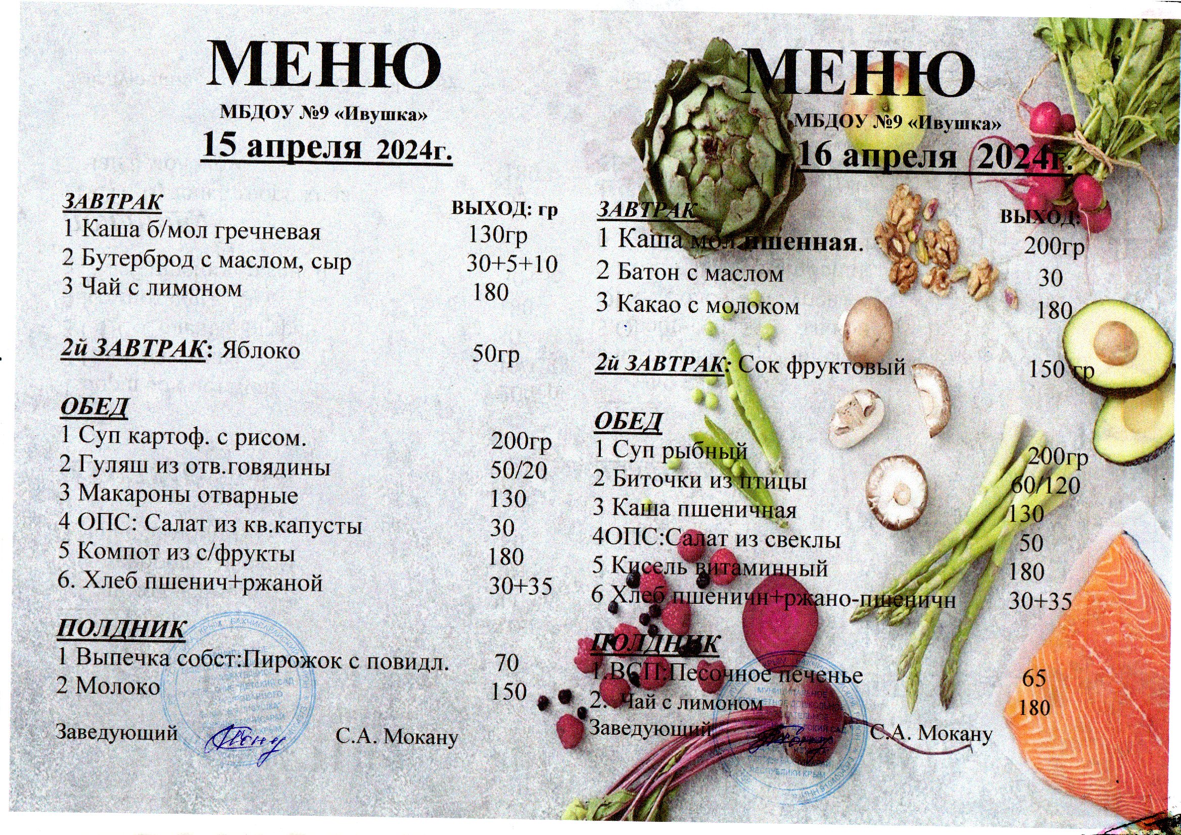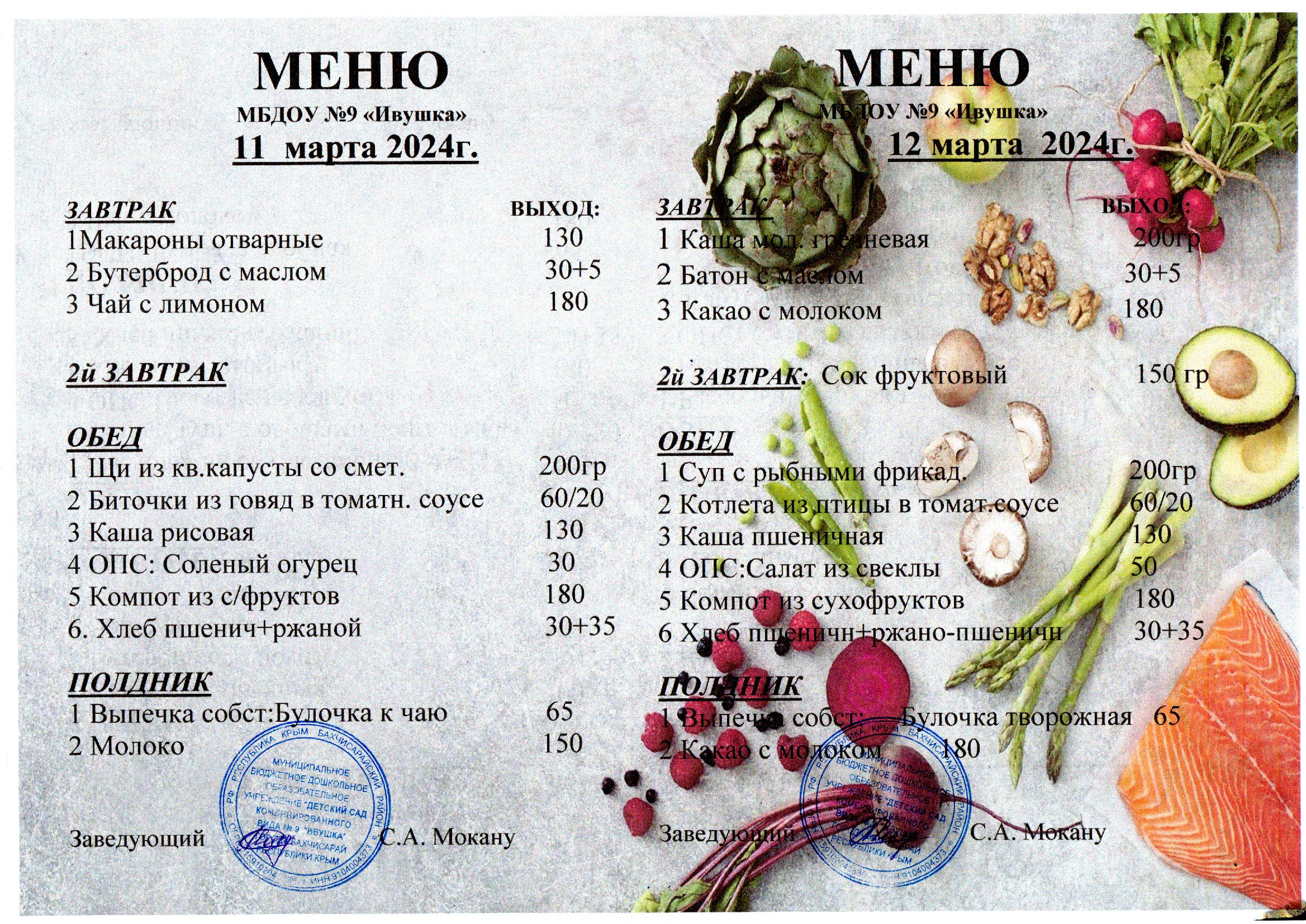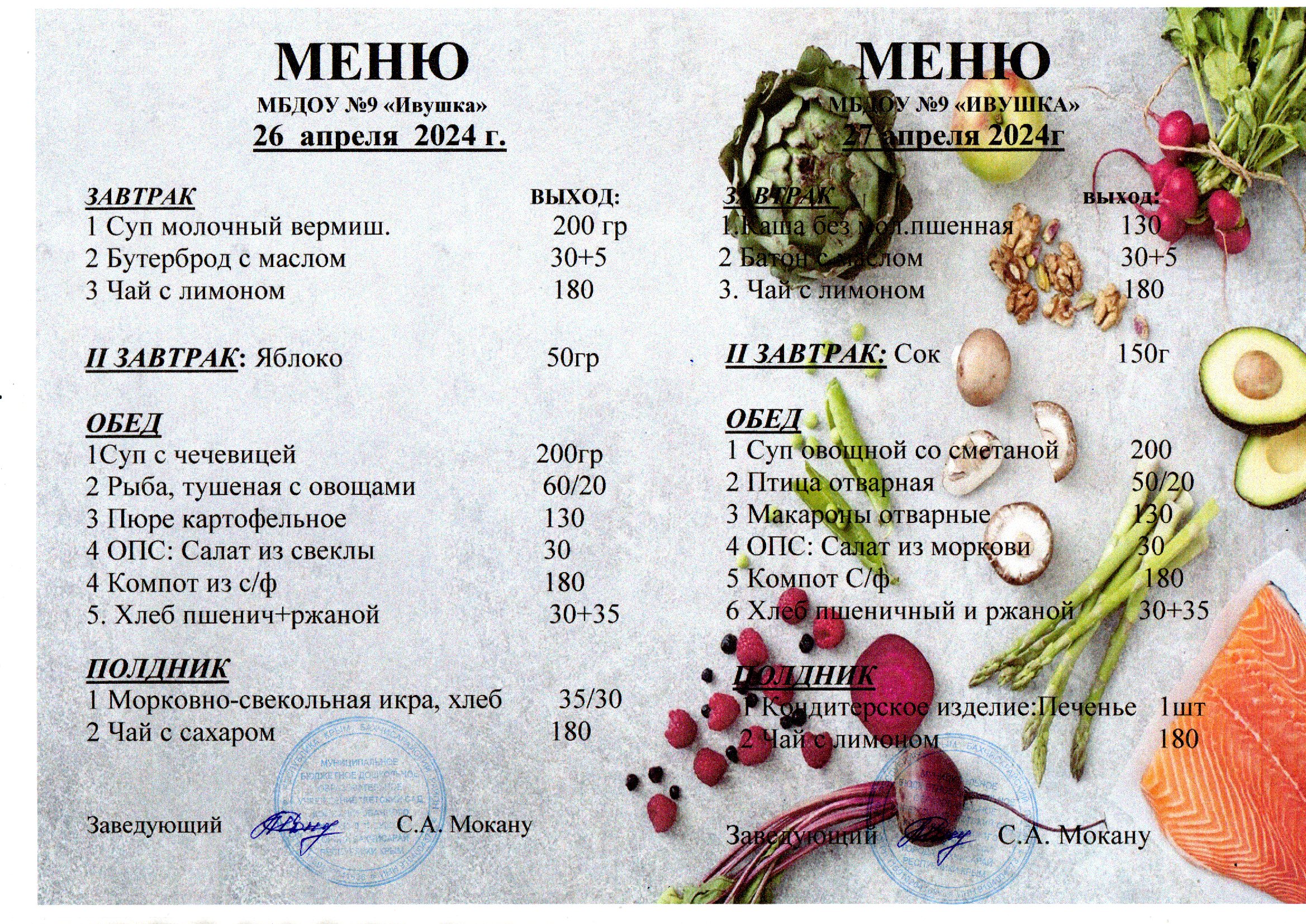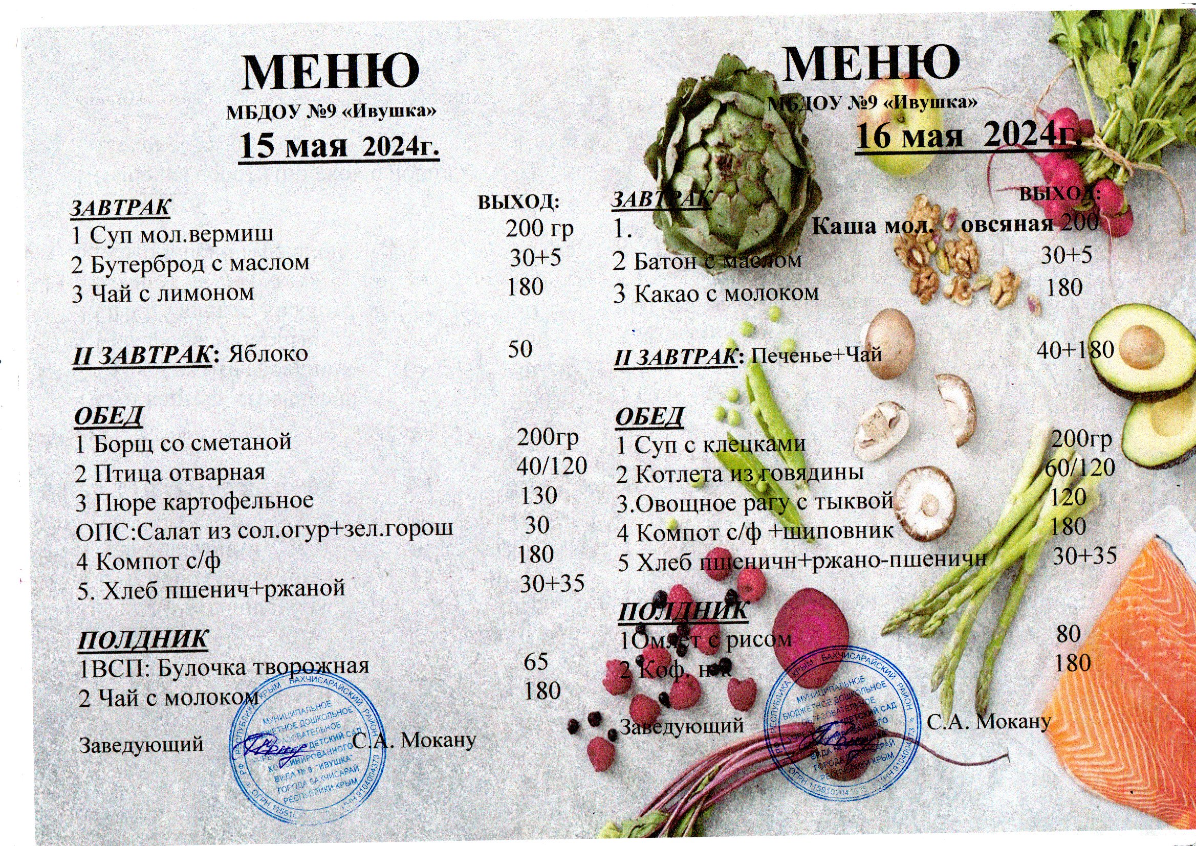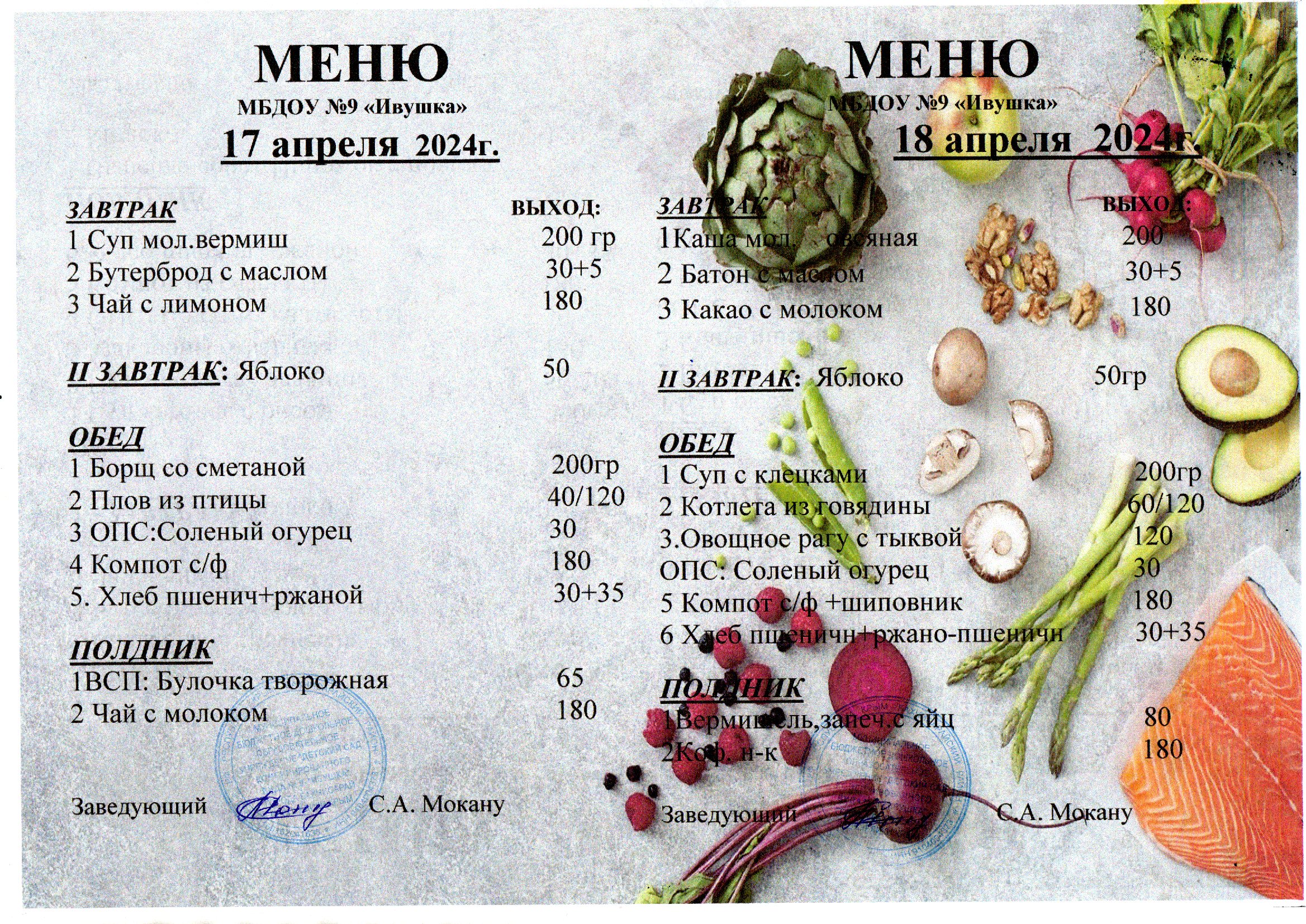 Отсутствуют, в связи с наличием поваров в штате МБДОУ "ДС № 9 "Ивушка" г.Бахчисарай.