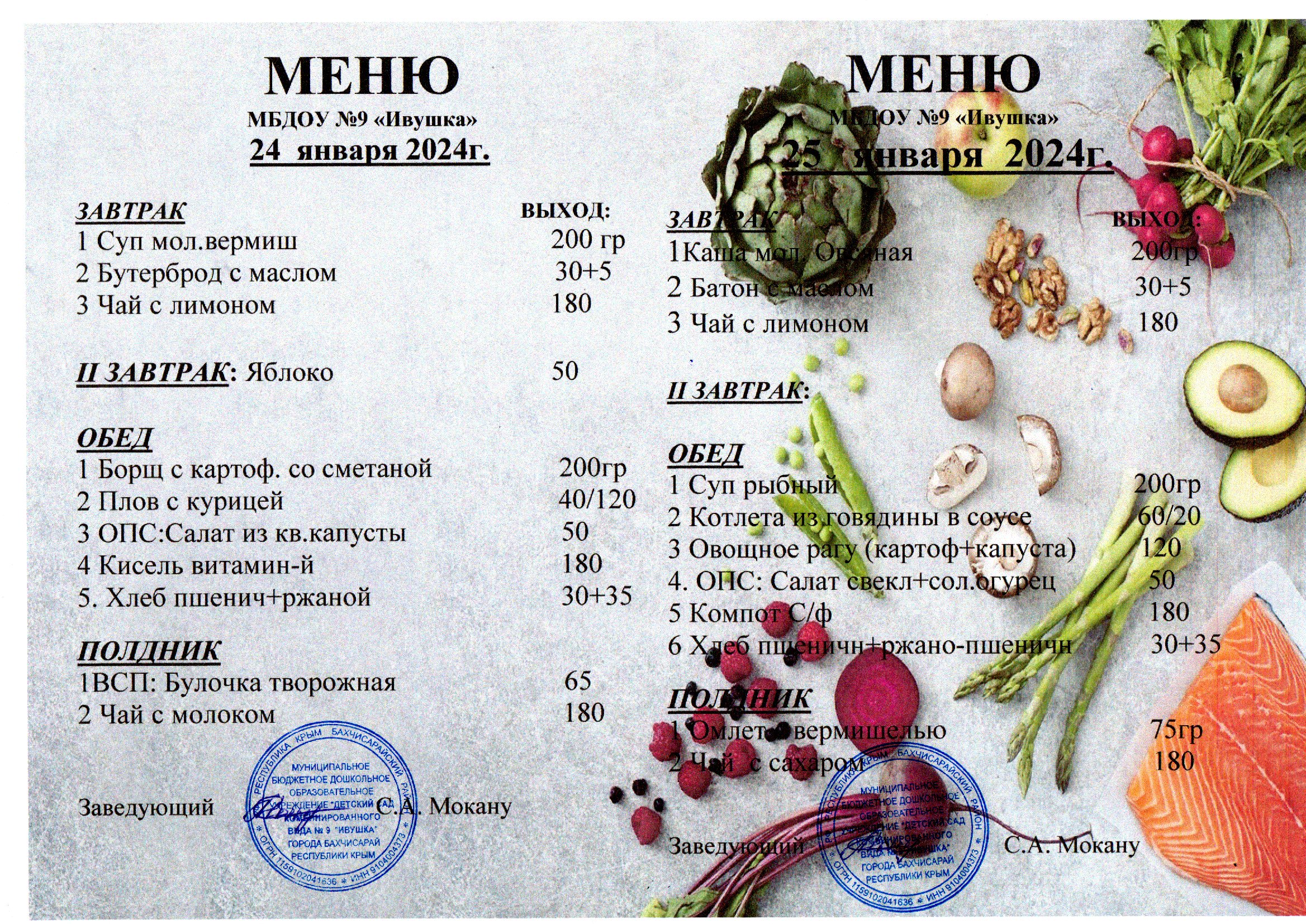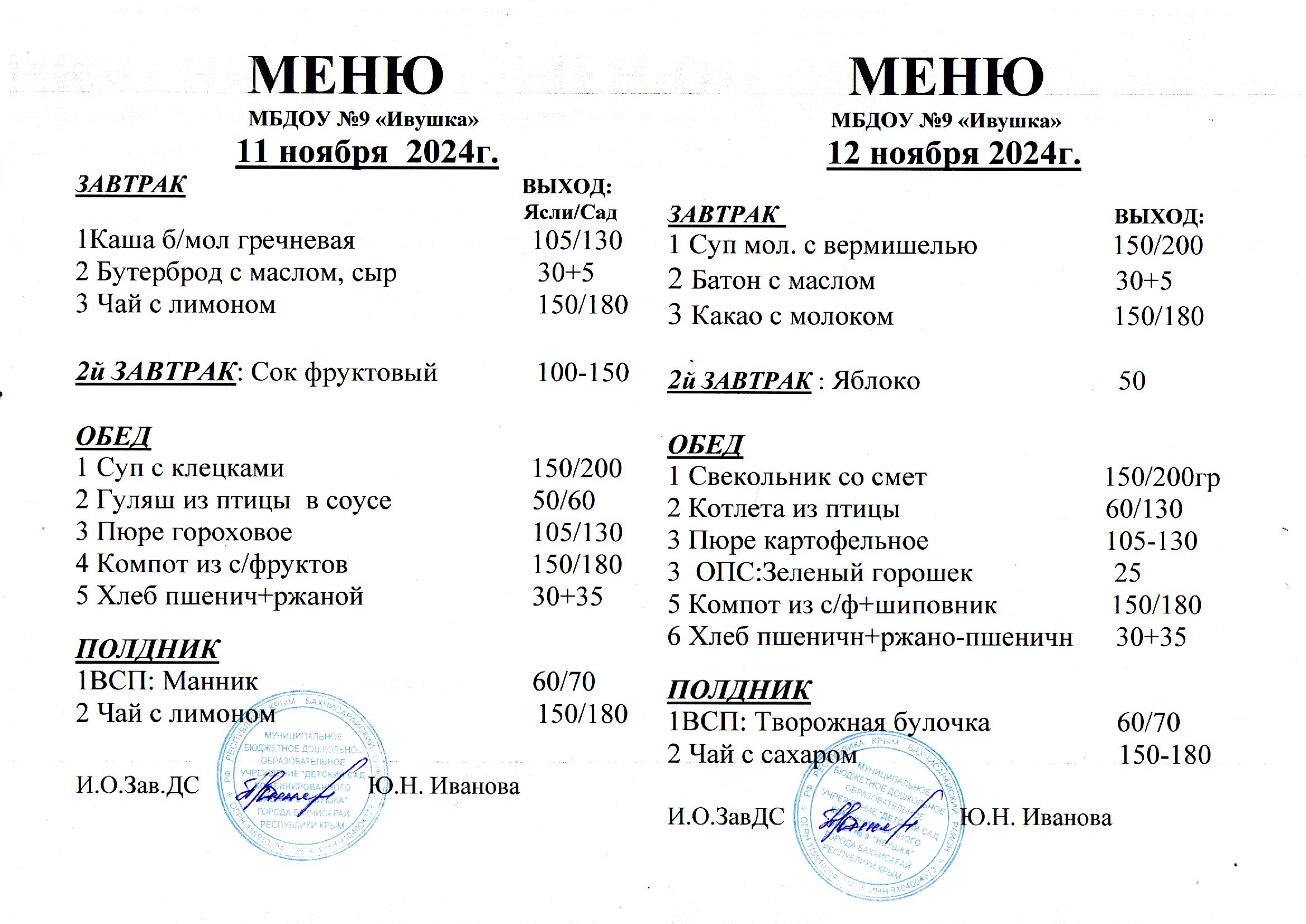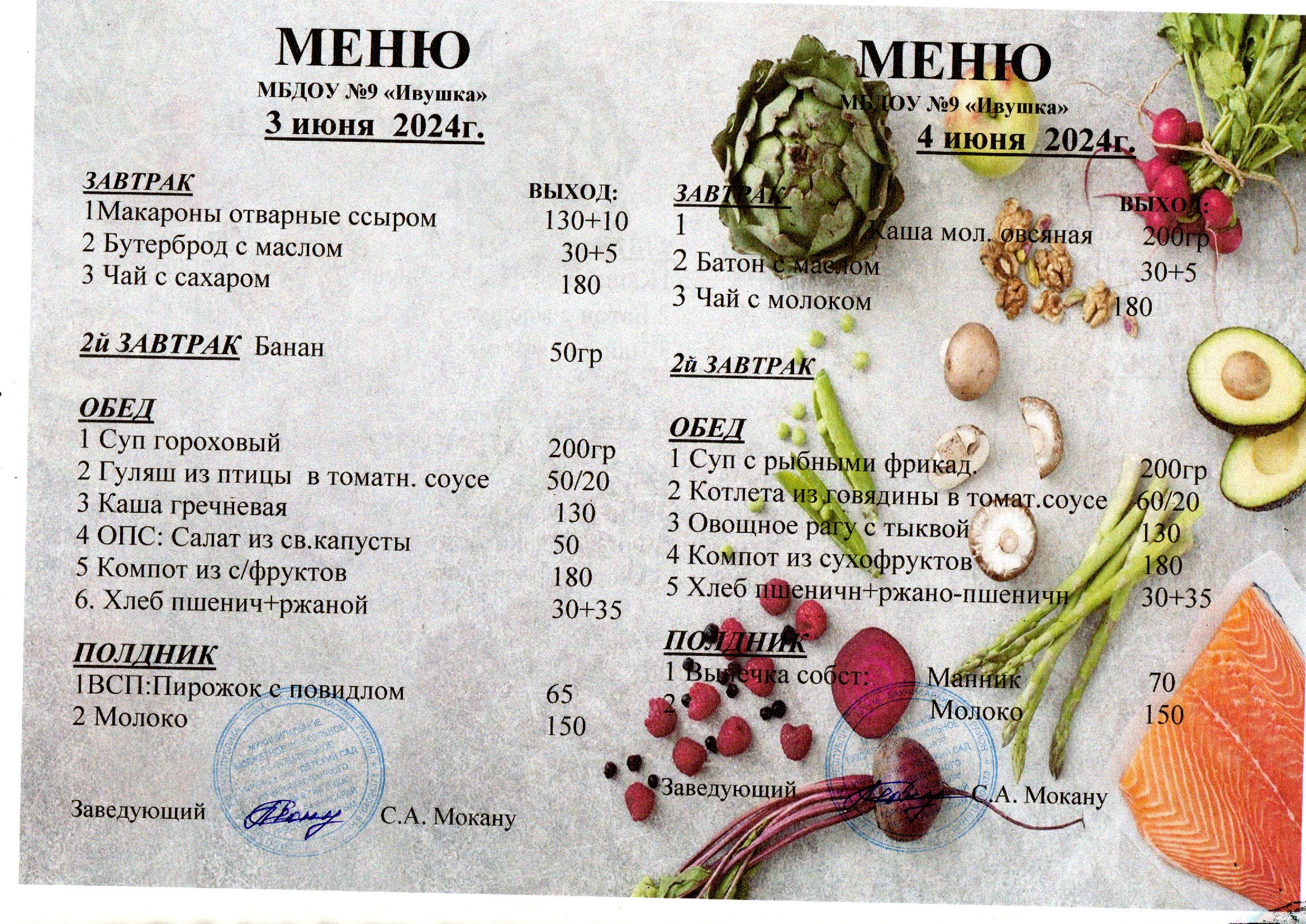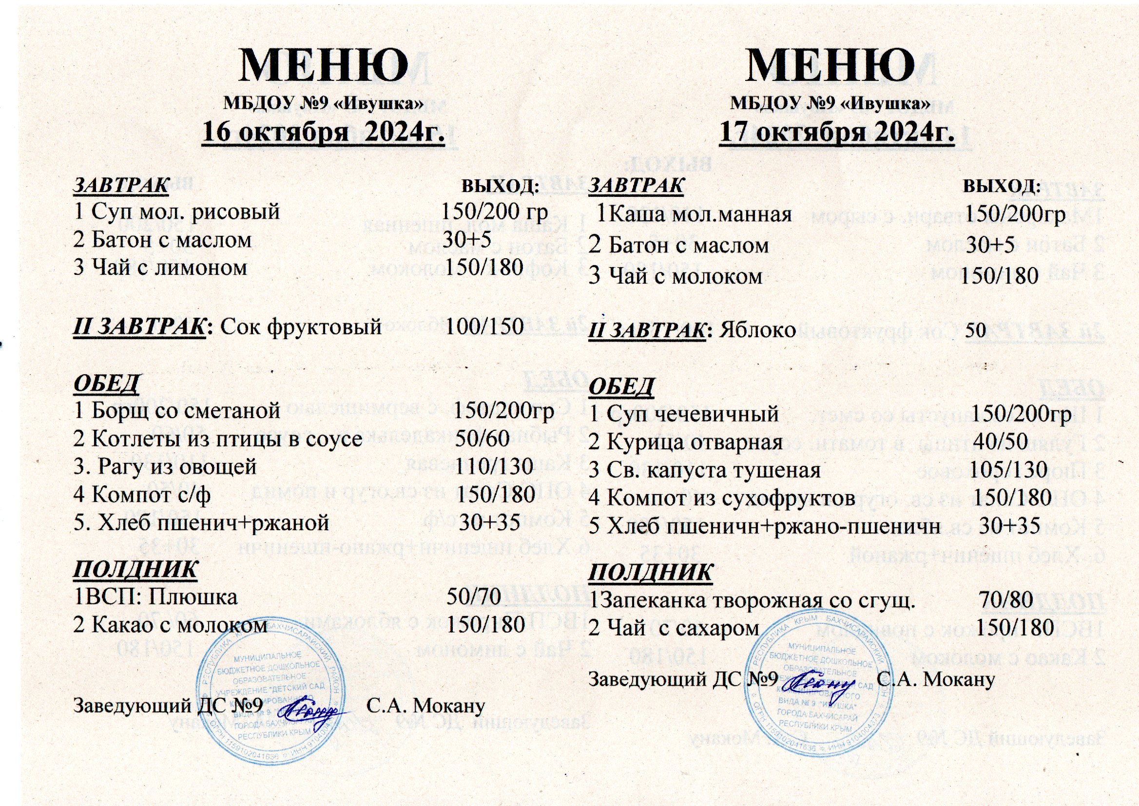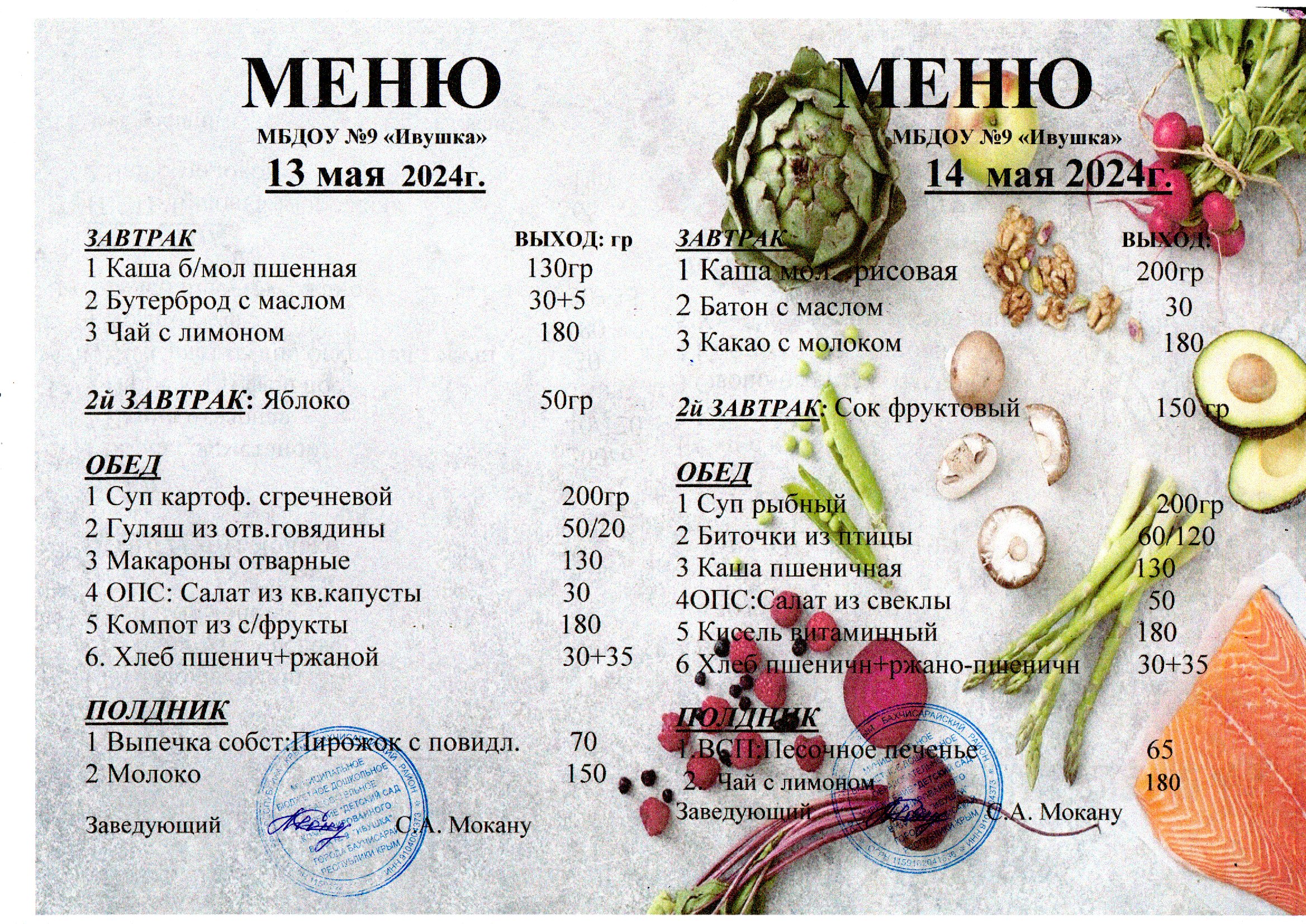 Отсутствуют, в связи с наличием поваров в штате МБДОУ "ДС № 9 "Ивушка" г.Бахчисарай.