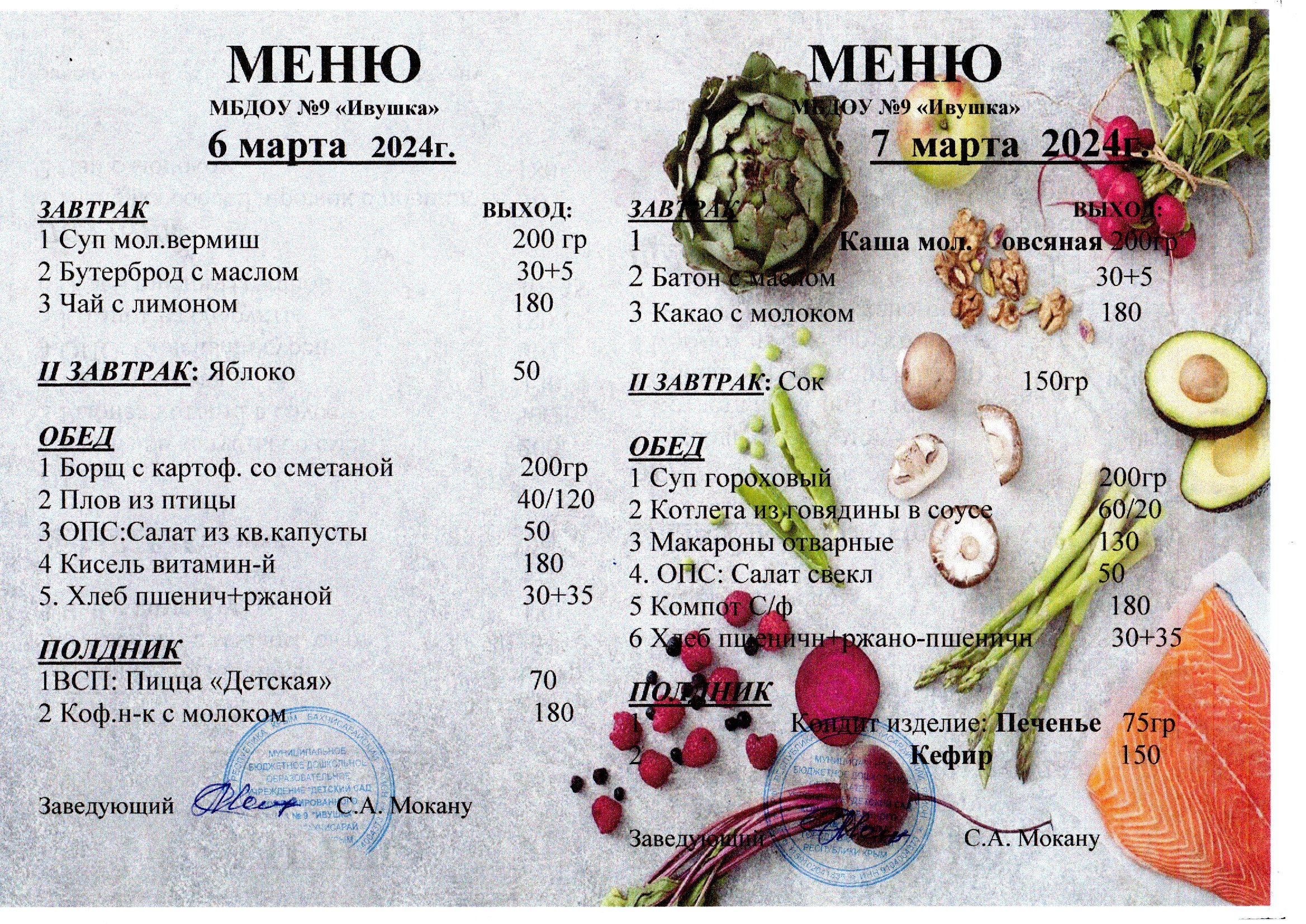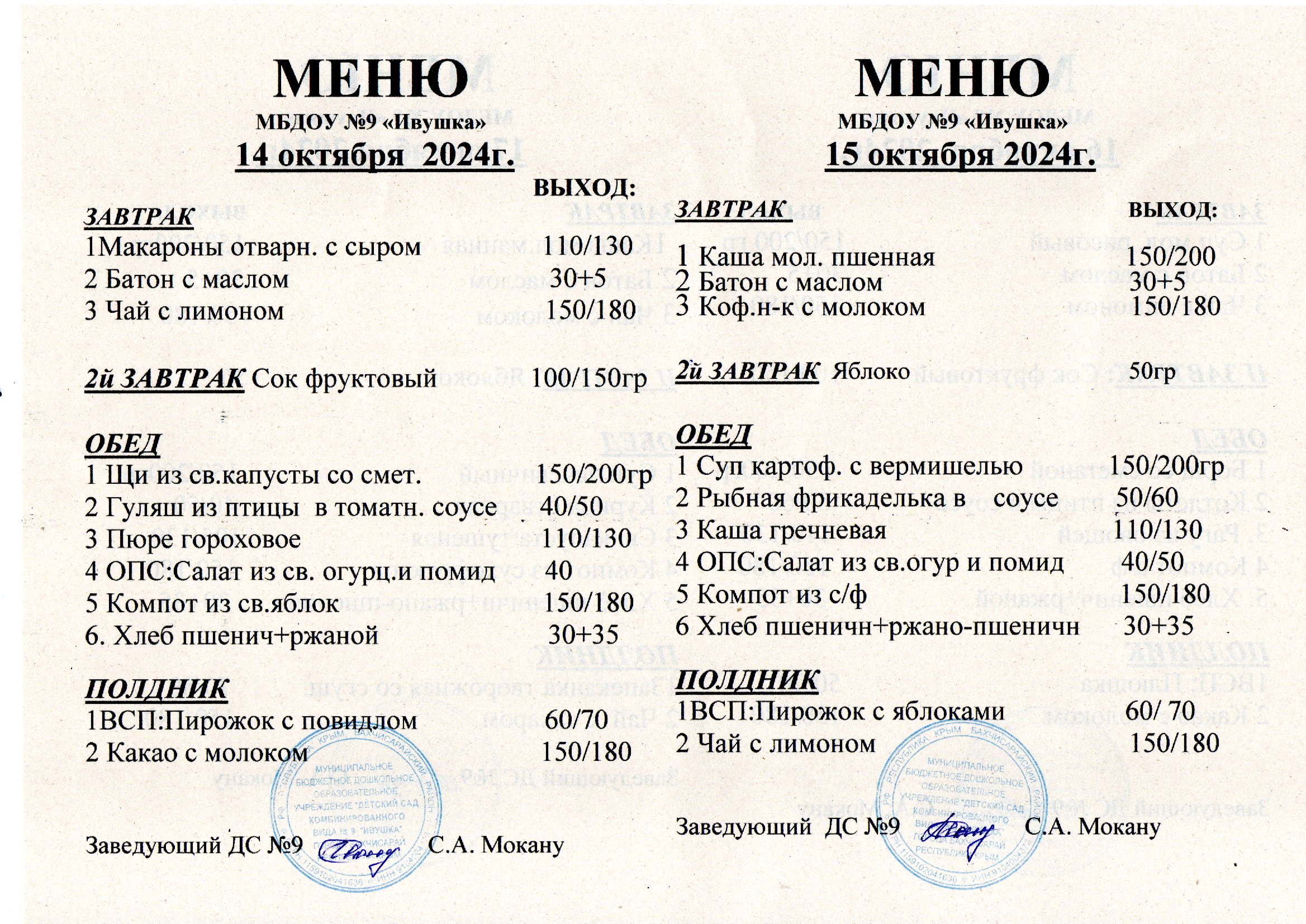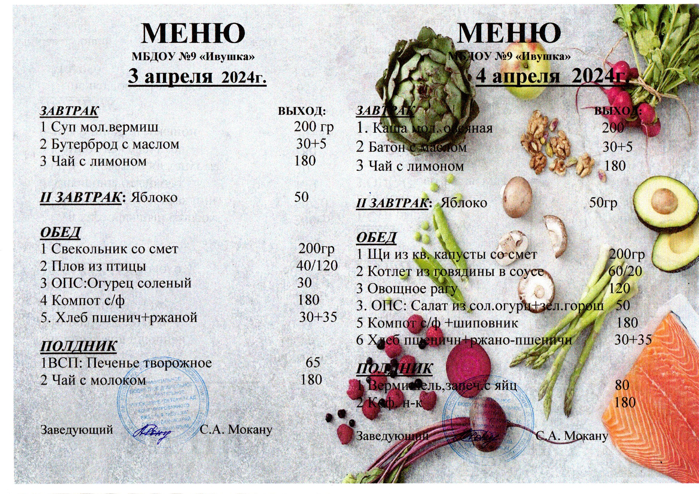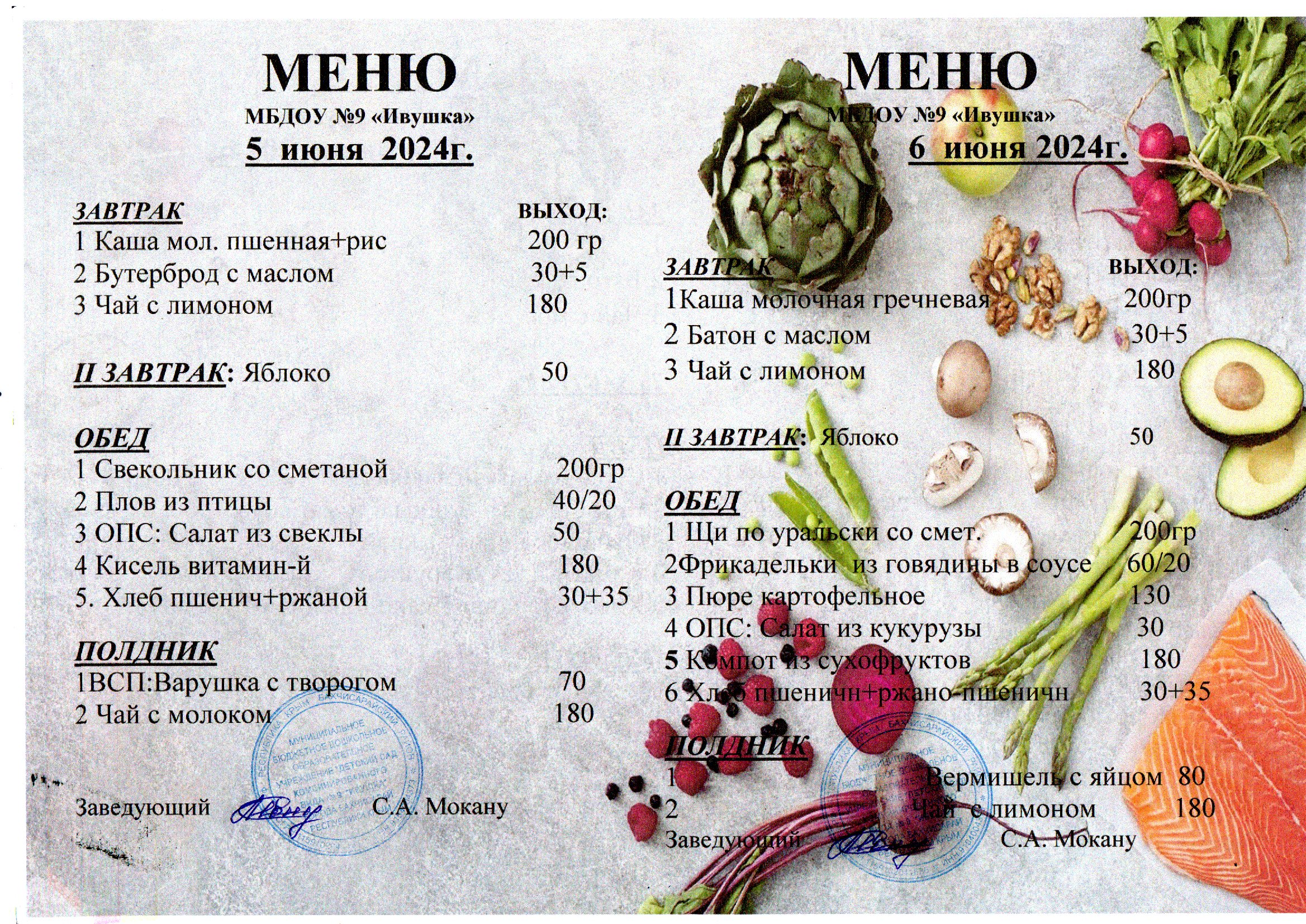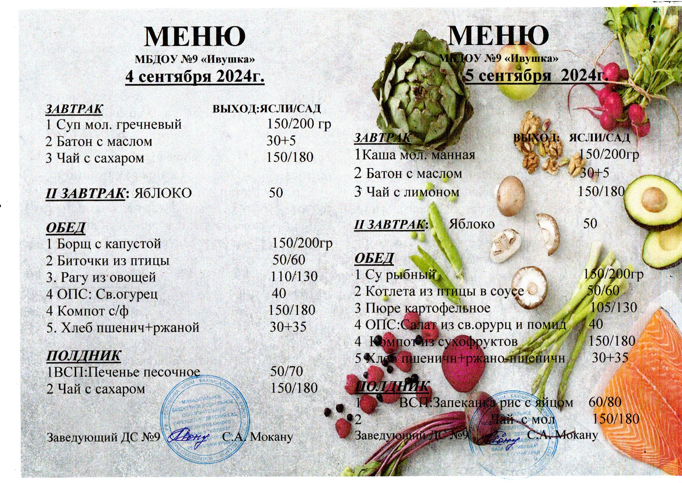 Отсутствуют, в связи с наличием поваров в штате МБДОУ "ДС № 9 "Ивушка" г.Бахчисарай.