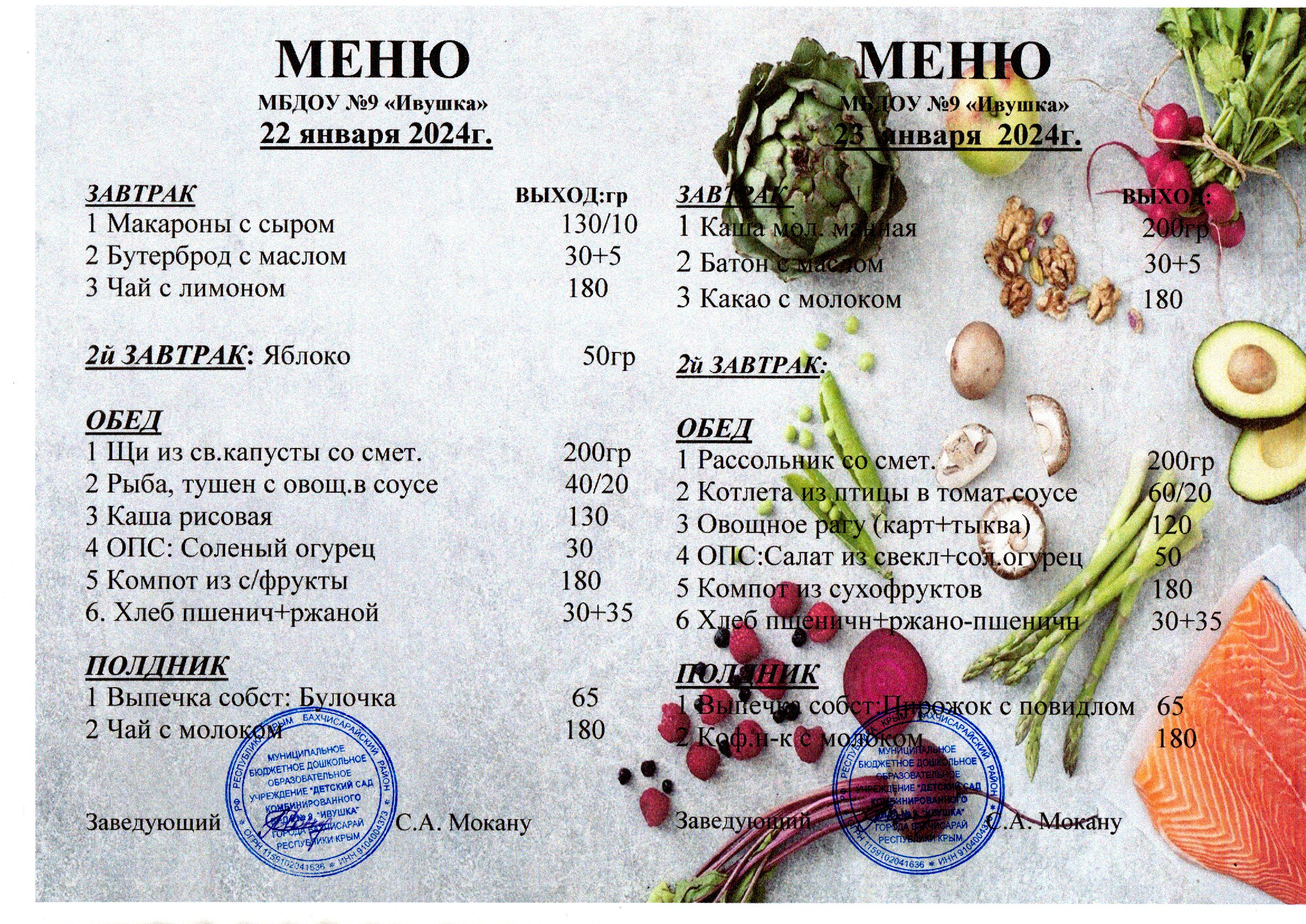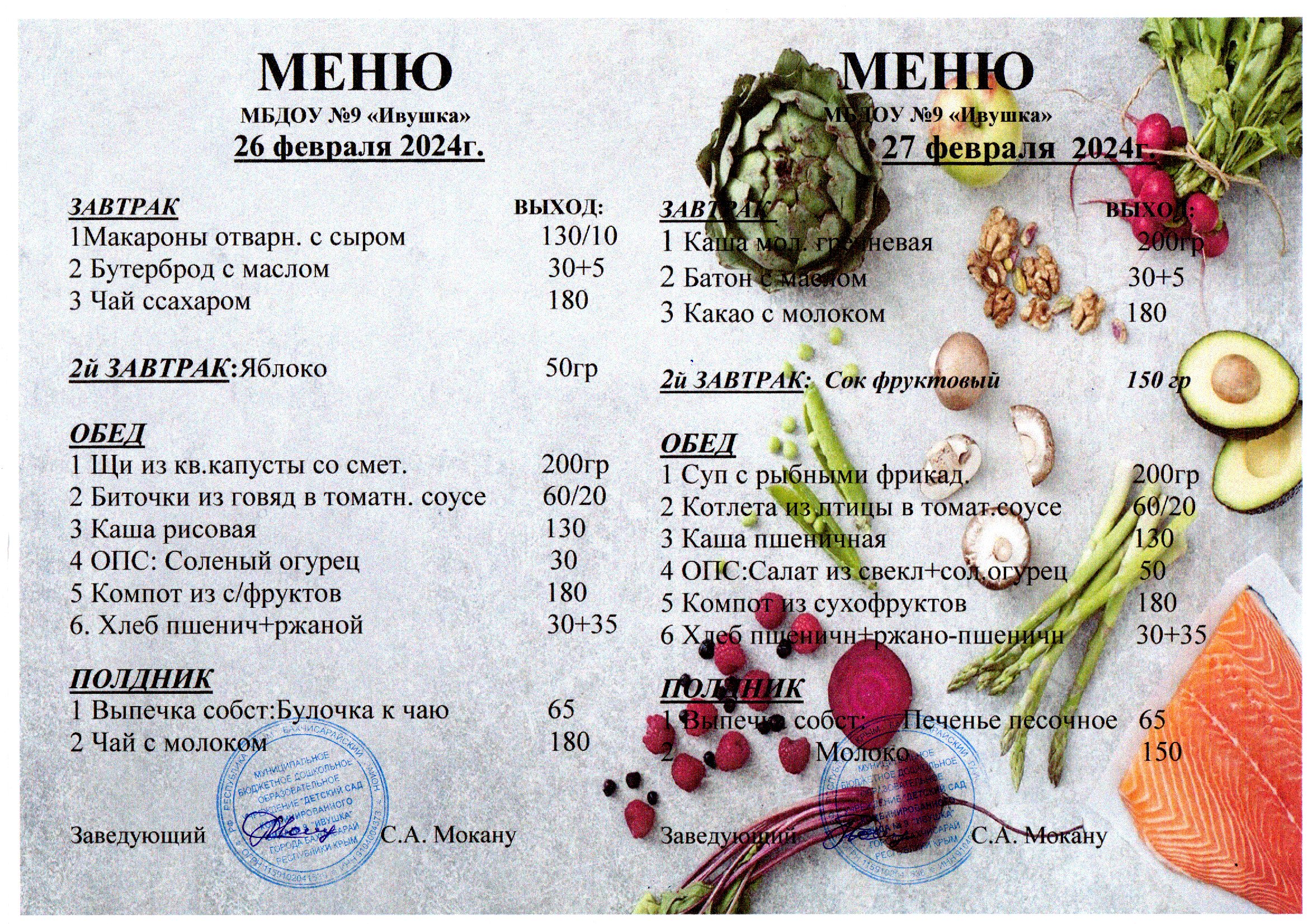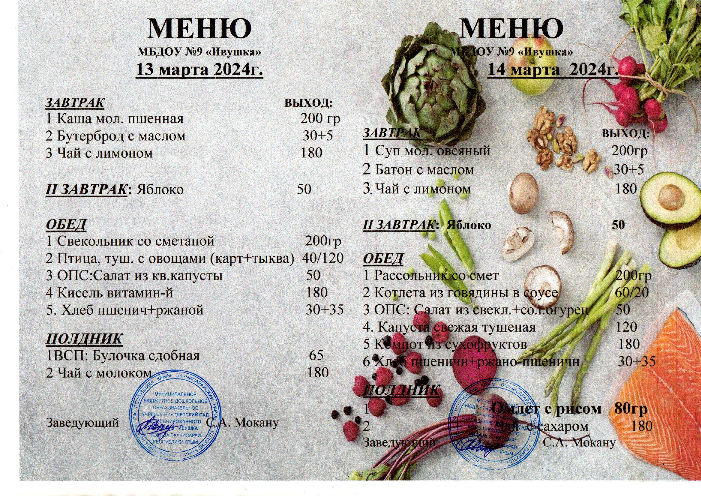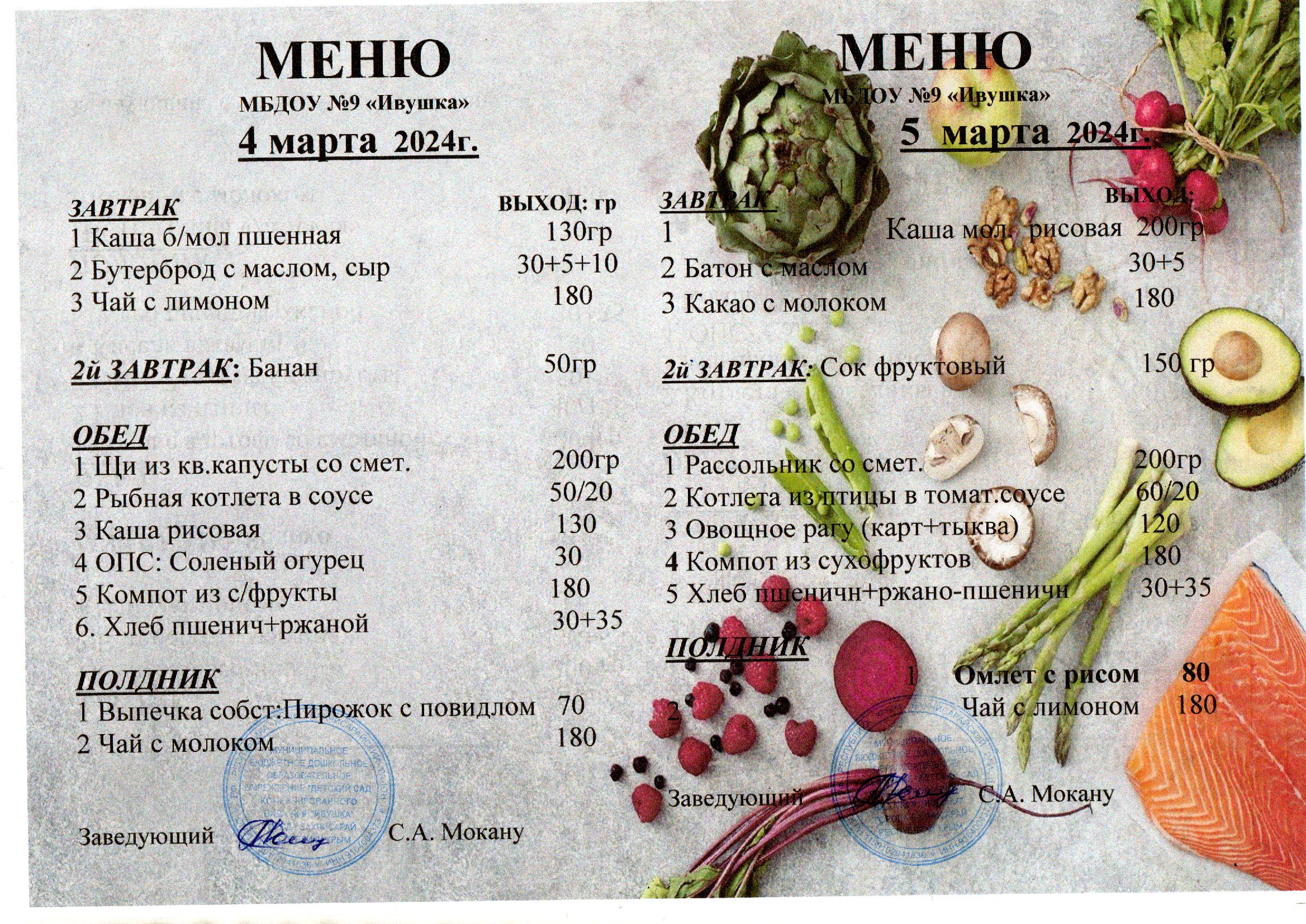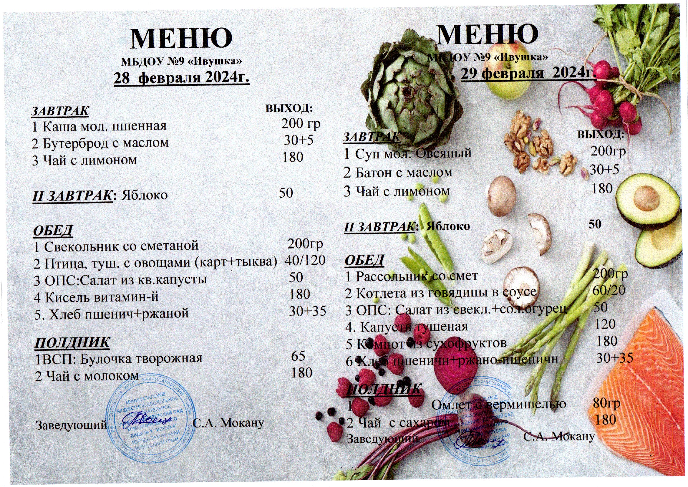 Отсутствуют, в связи с наличием поваров в штате МБДОУ "ДС № 9 "Ивушка" г.Бахчисарай.