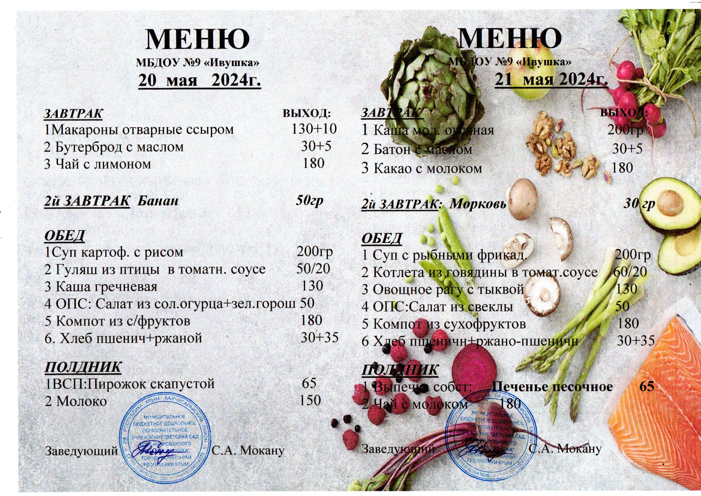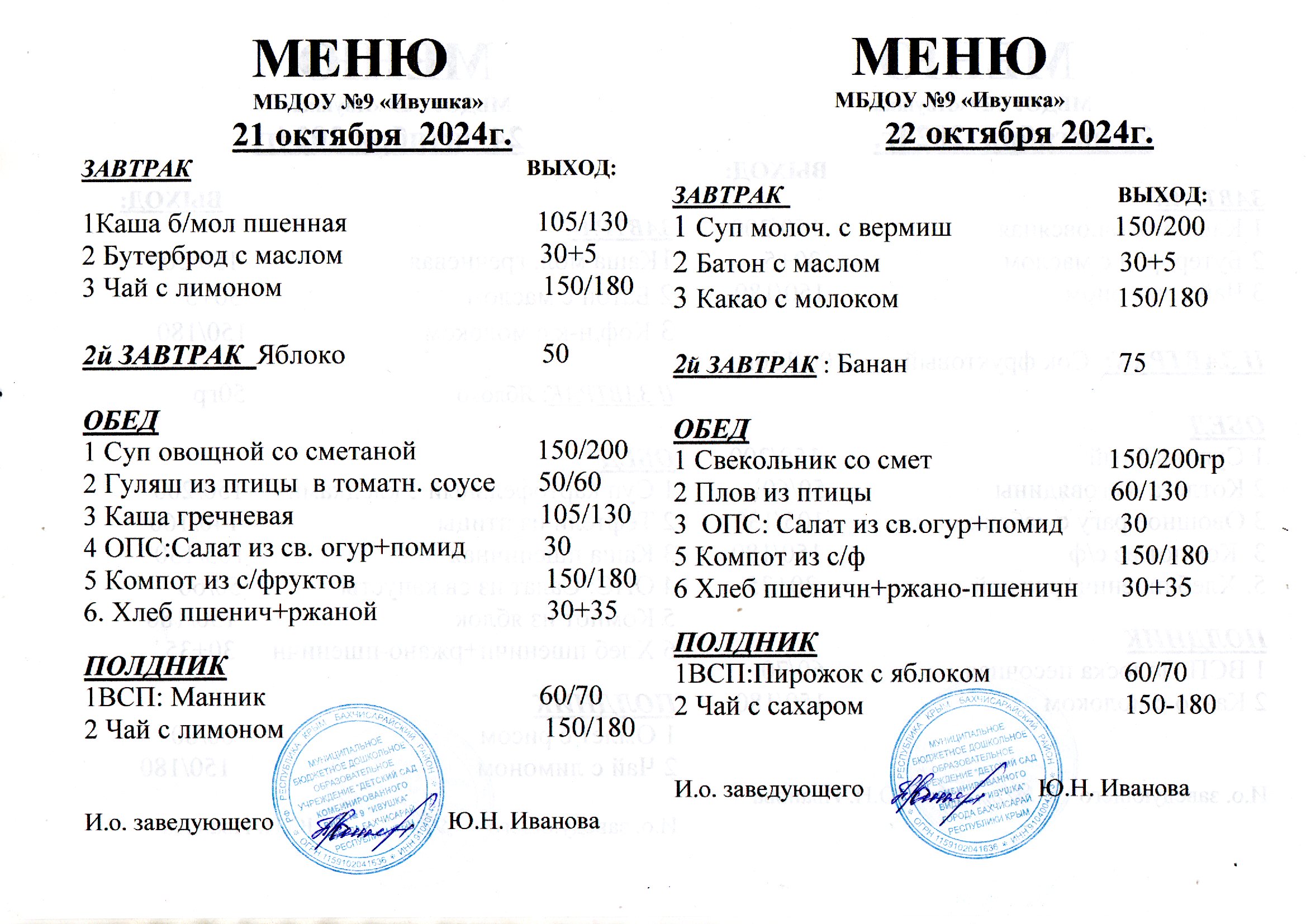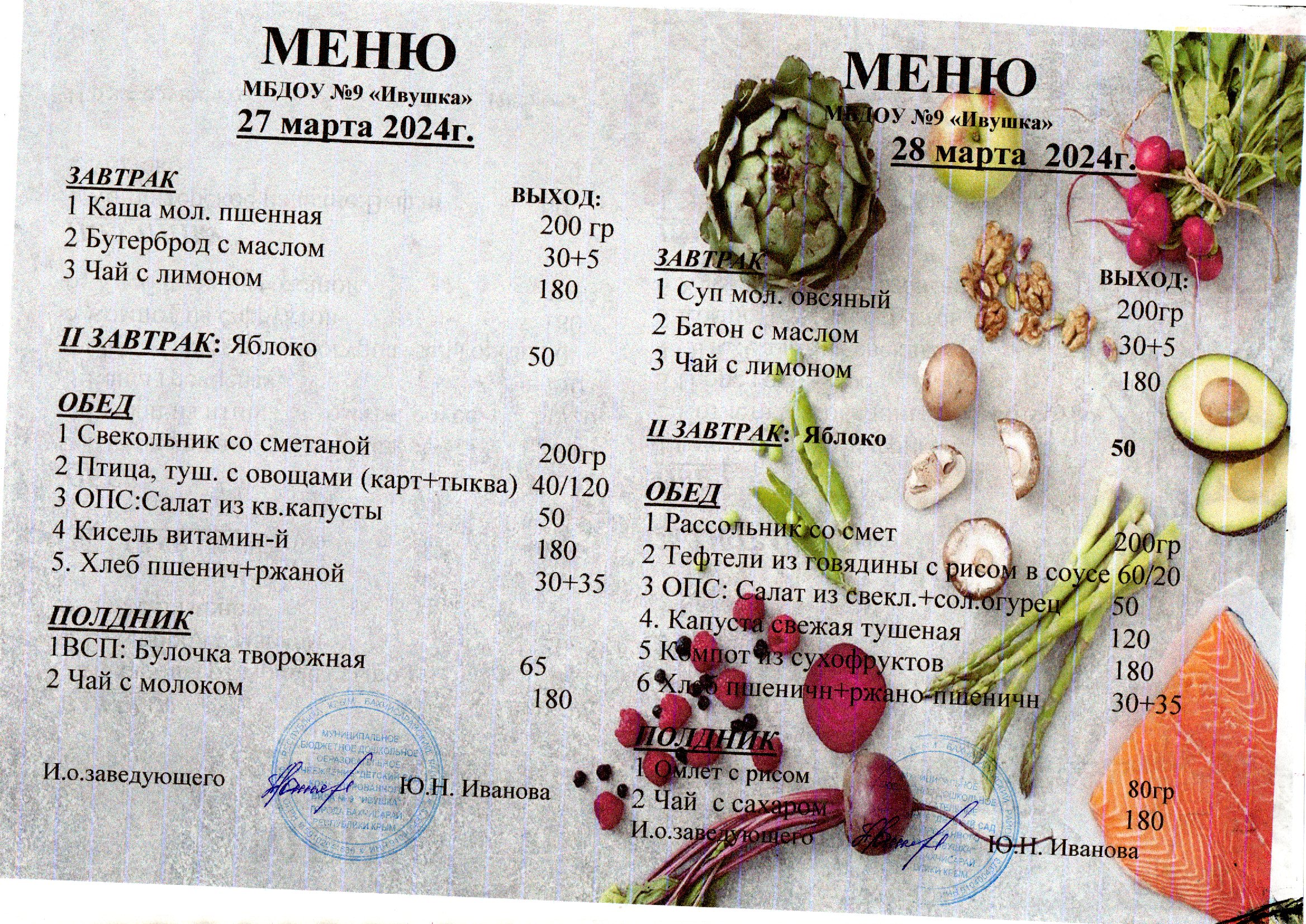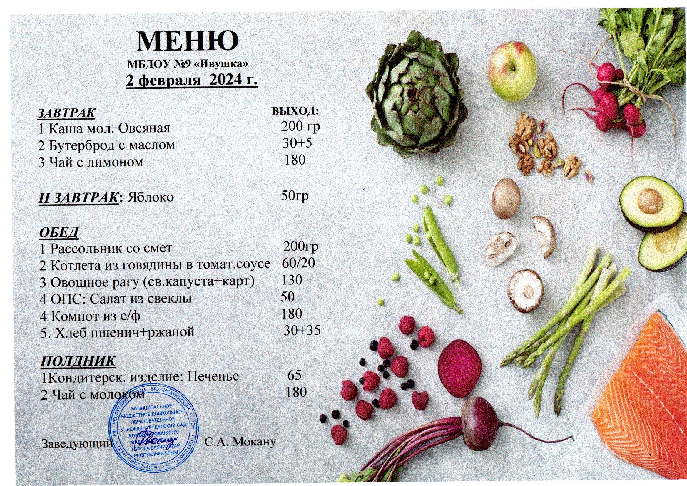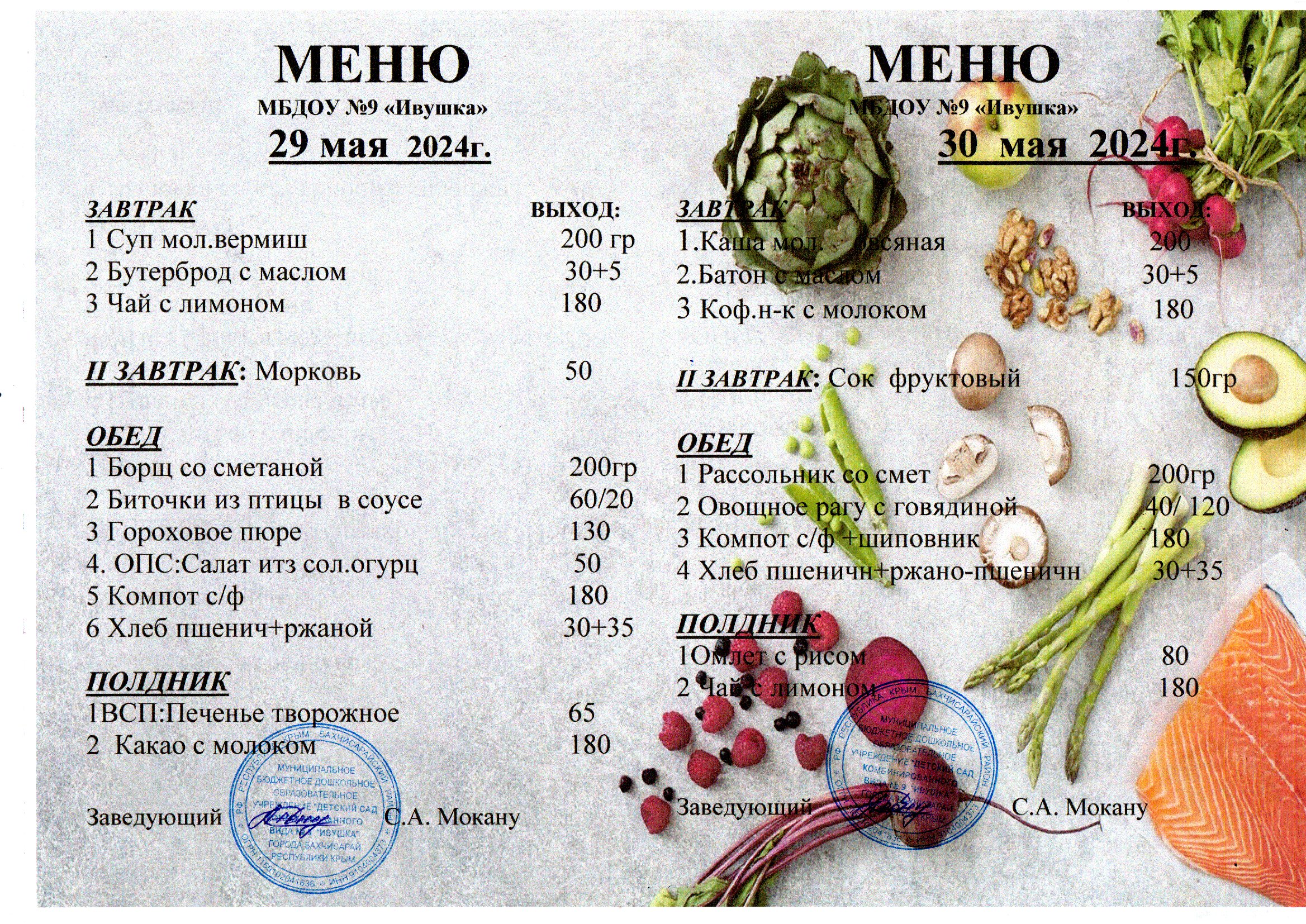 Отсутствуют, в связи с наличием поваров в штате МБДОУ "ДС № 9 "Ивушка" г.Бахчисарай.