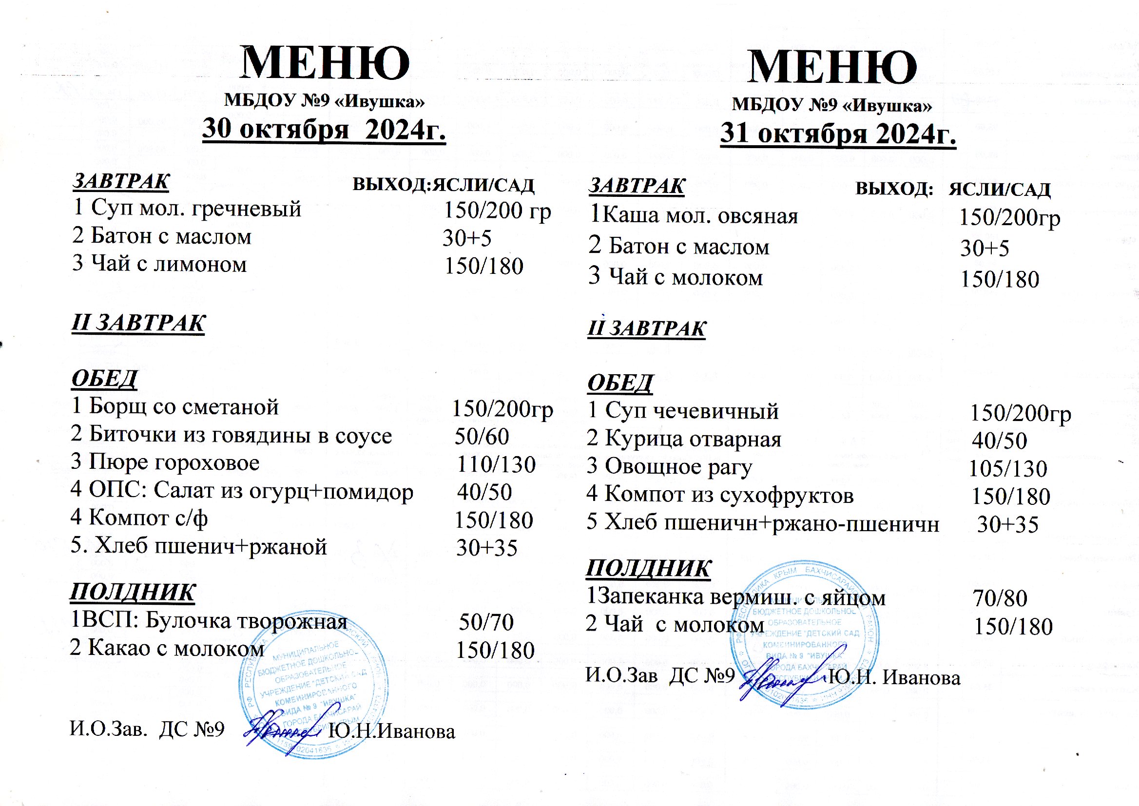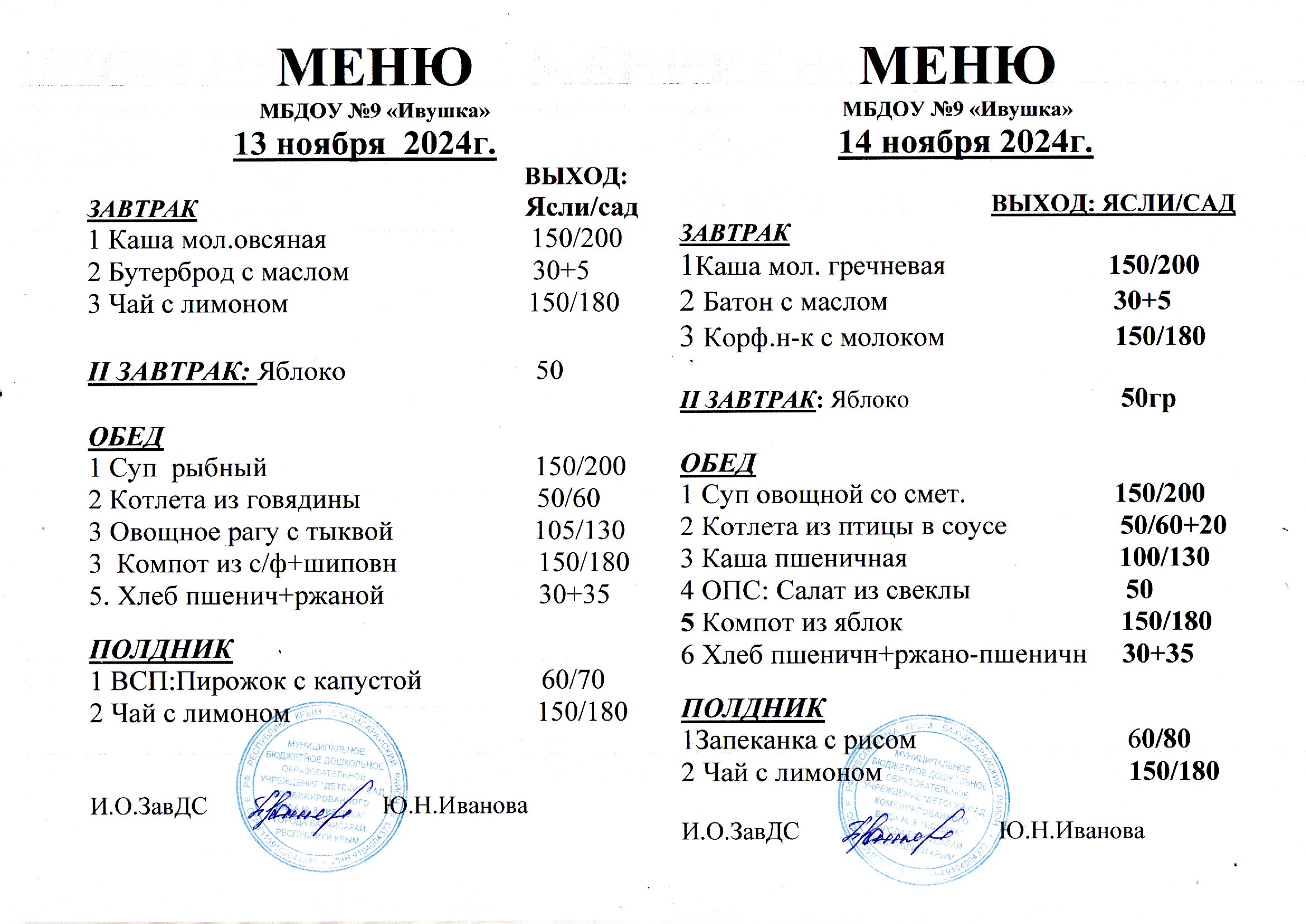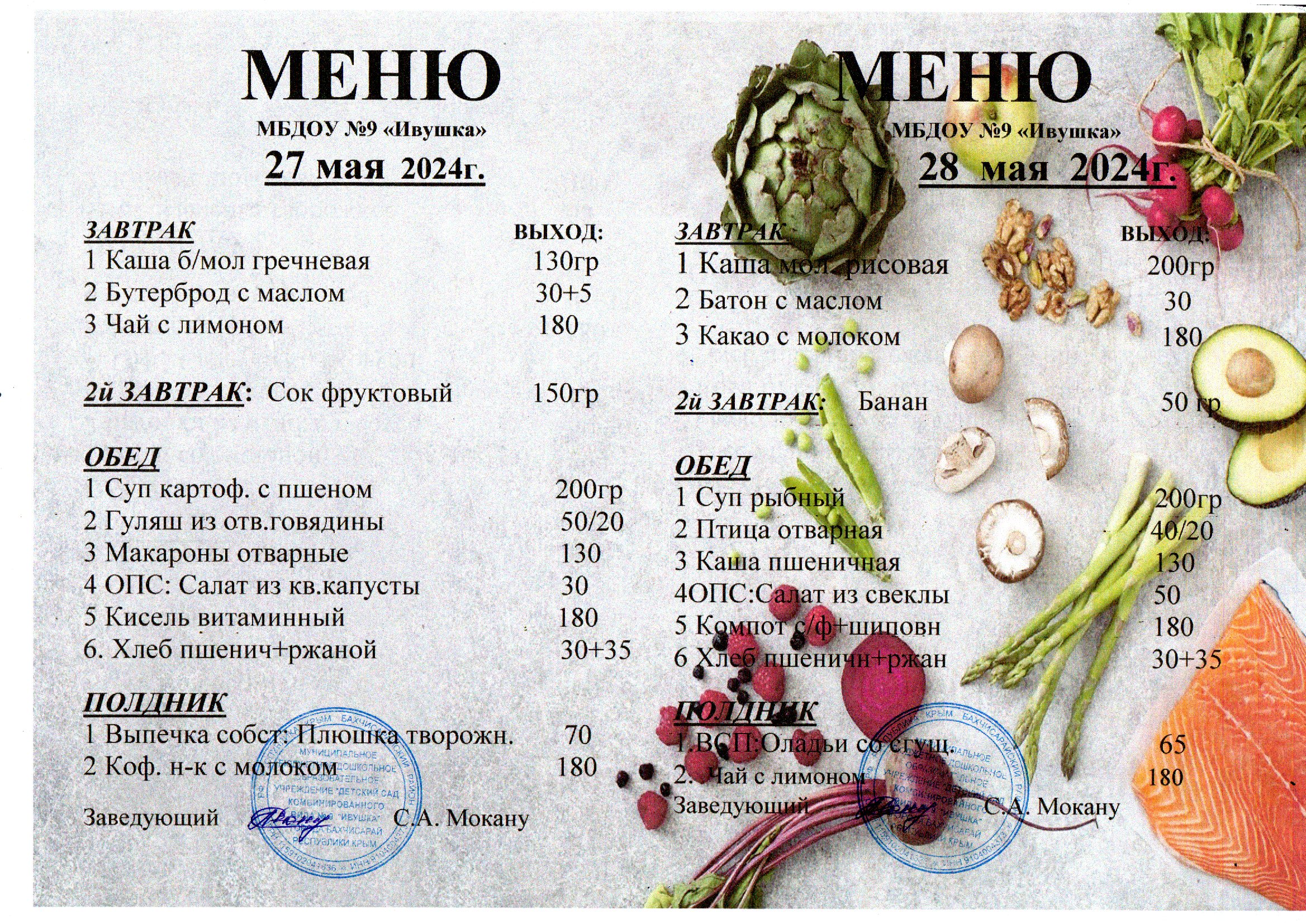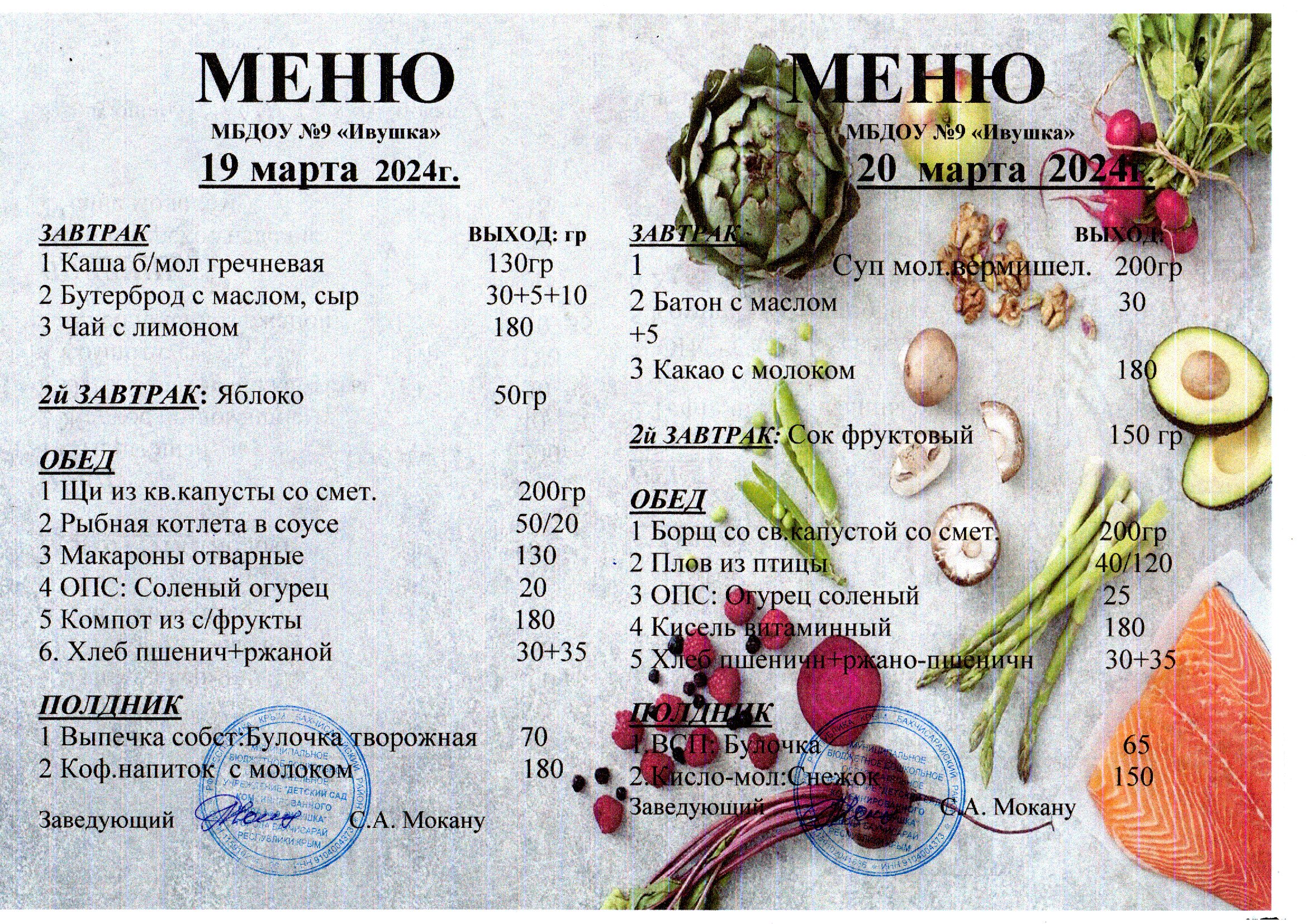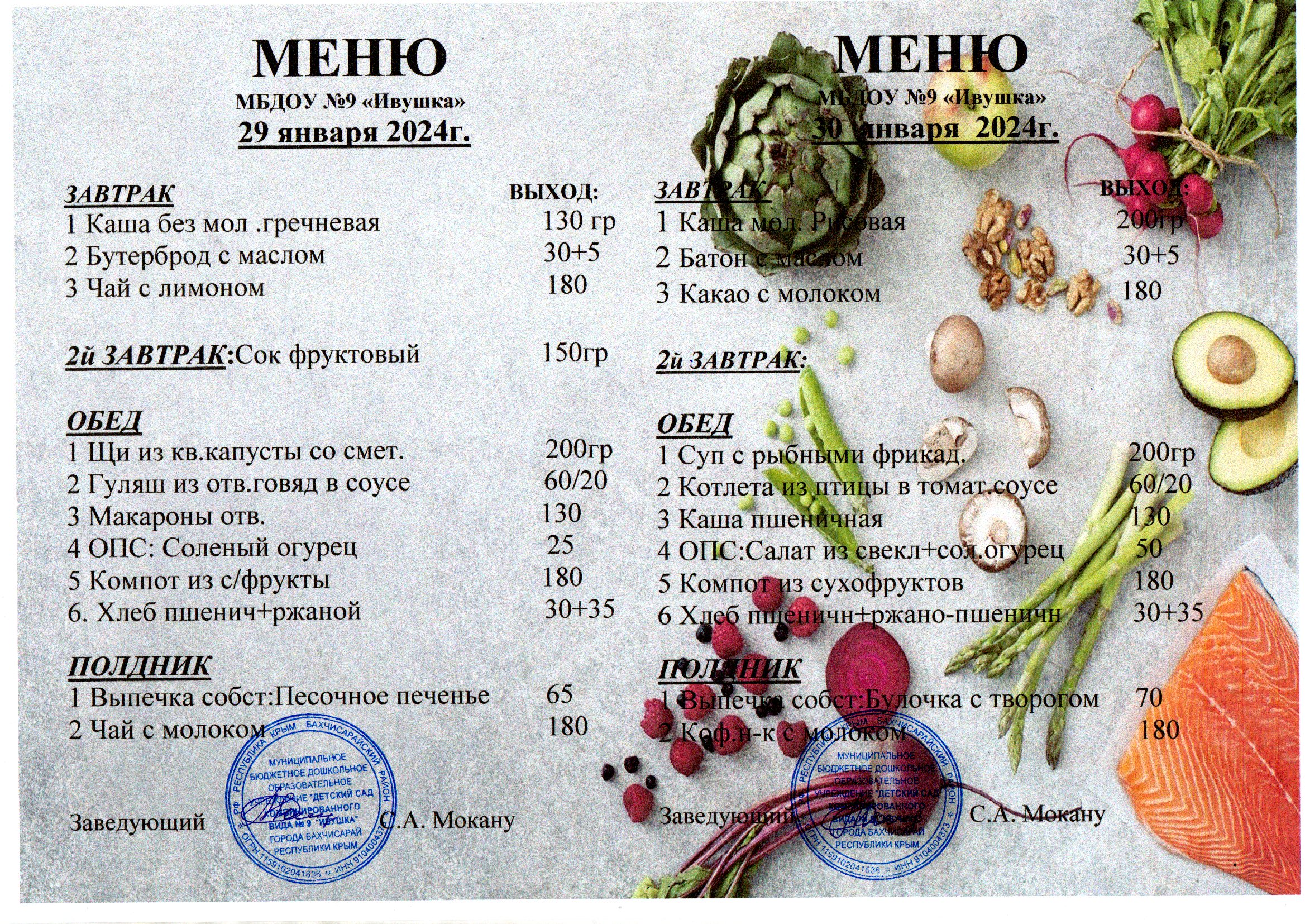 Отсутствуют, в связи с наличием поваров в штате МБДОУ "ДС № 9 "Ивушка" г.Бахчисарай.