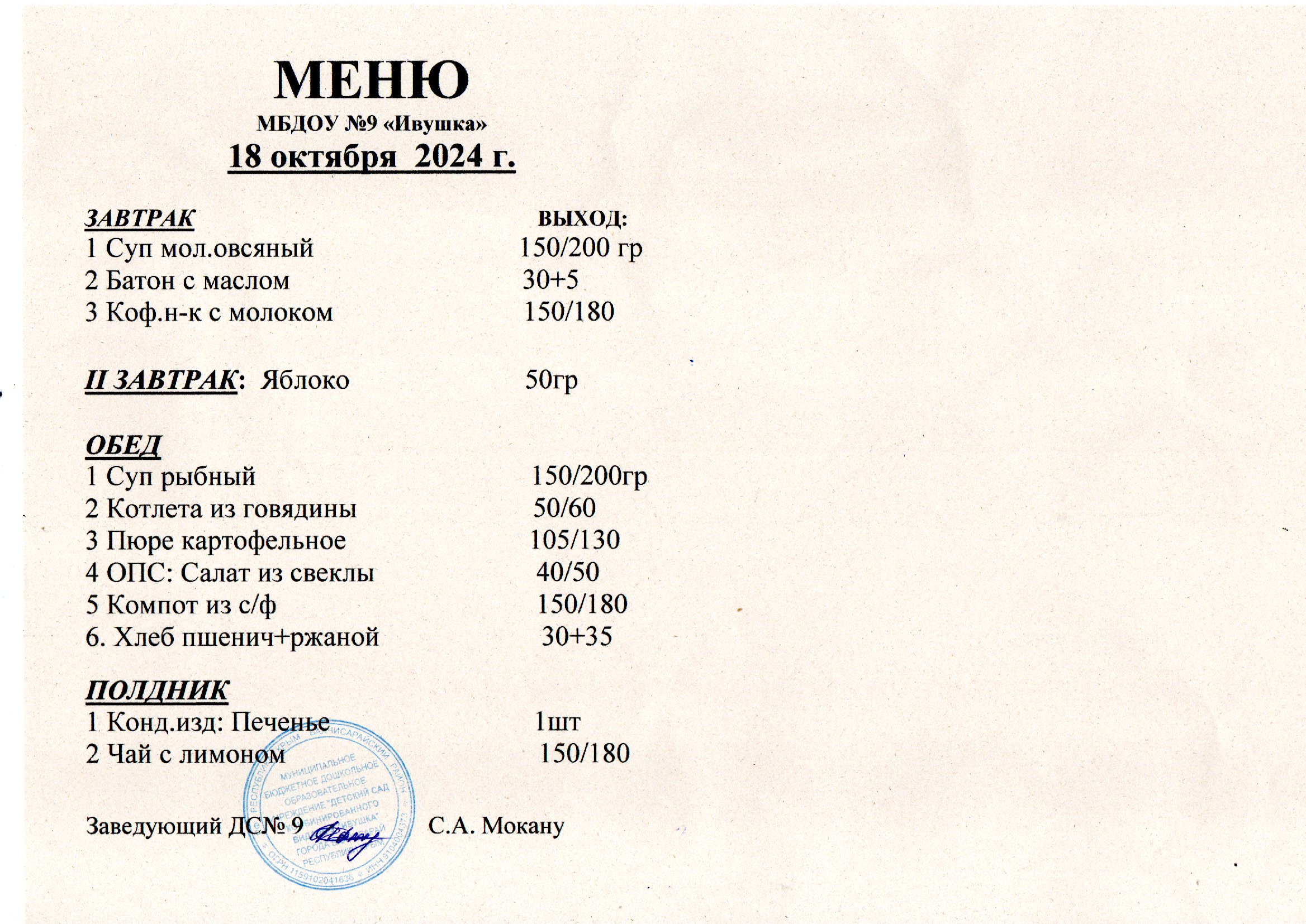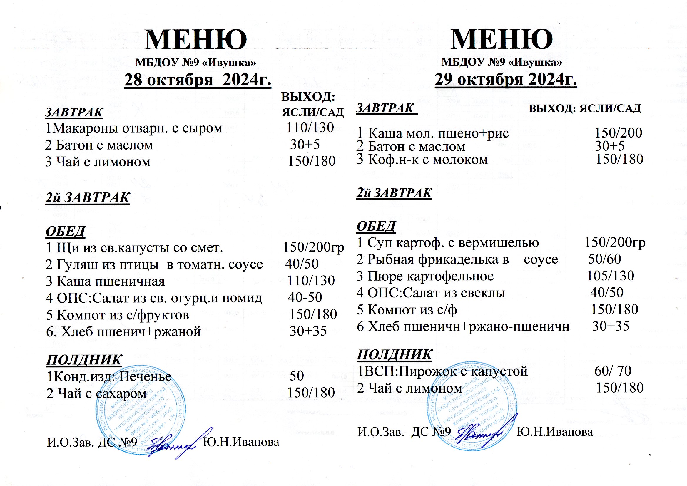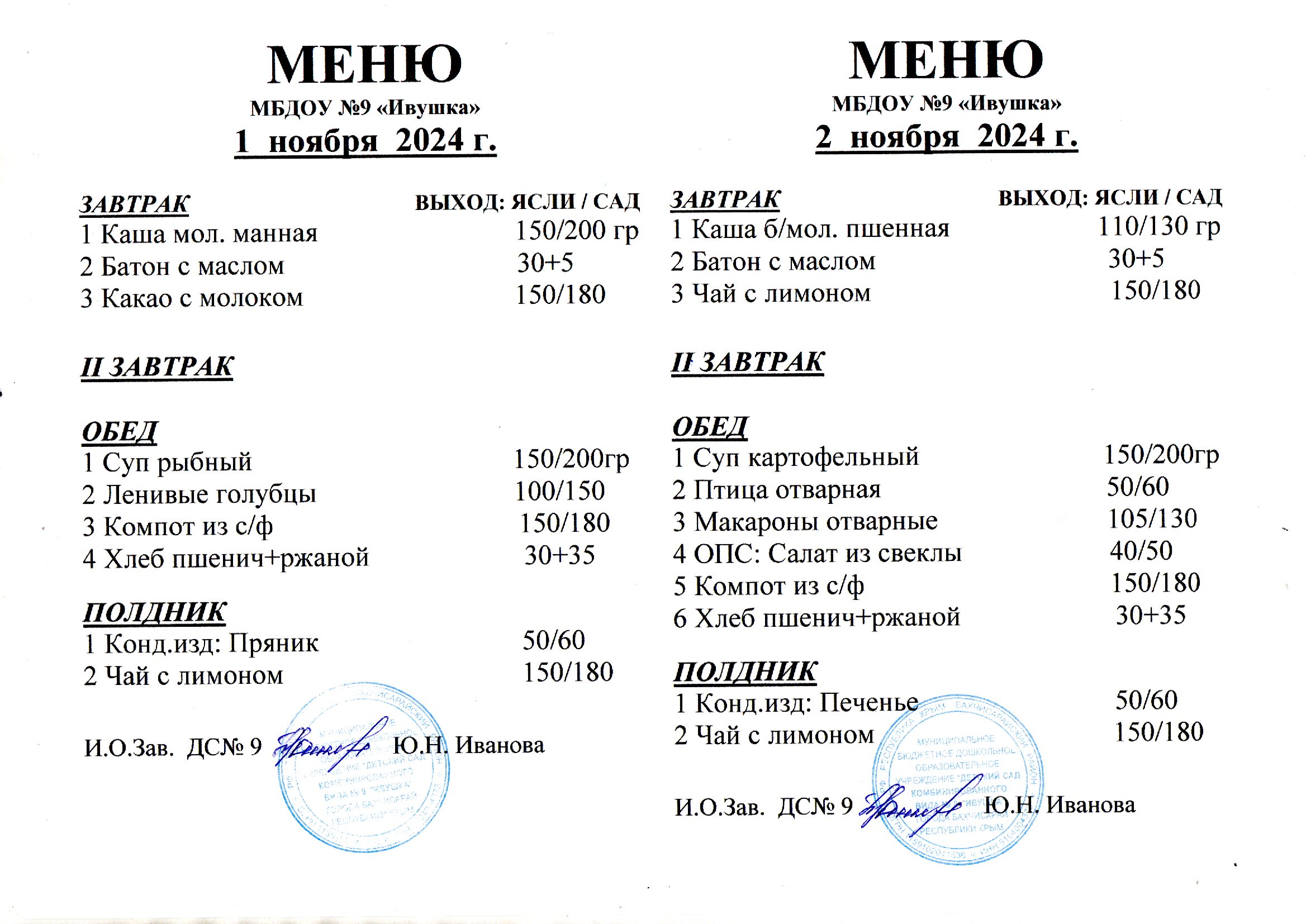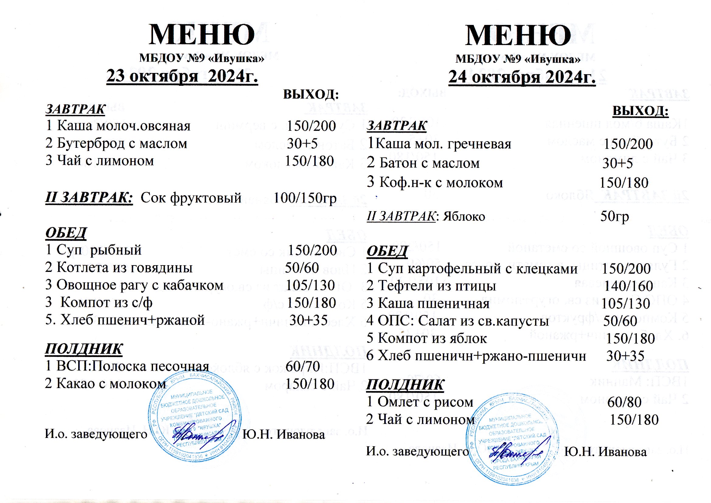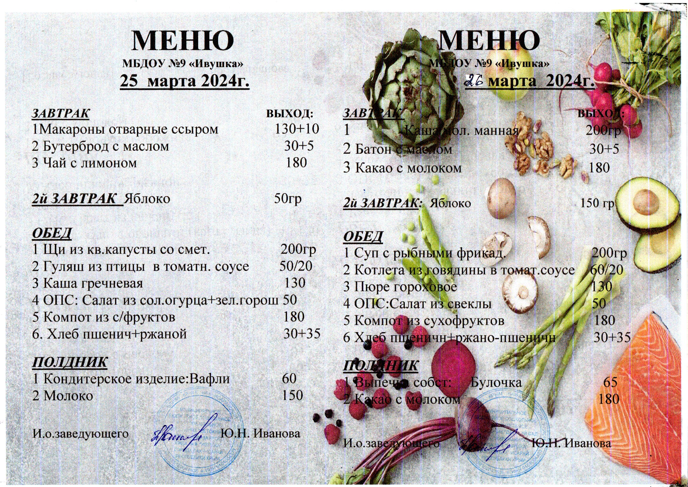 Отсутствуют, в связи с наличием поваров в штате МБДОУ "ДС № 9 "Ивушка" г.Бахчисарай.